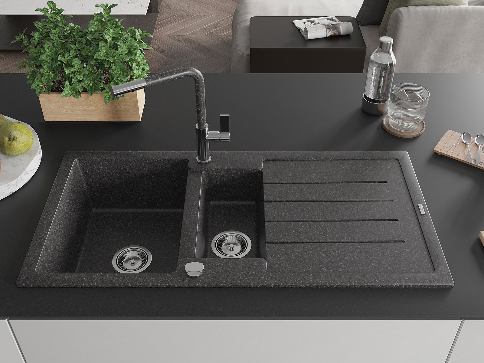 El fregadero está hecho de granito de alta calidad. Es un complemento elegante y, sobre todo, práctico para cualquier cocina, independientemente de su estilo. La alta calidad y durabilidad del granito aseguran un uso prolongado durante años.