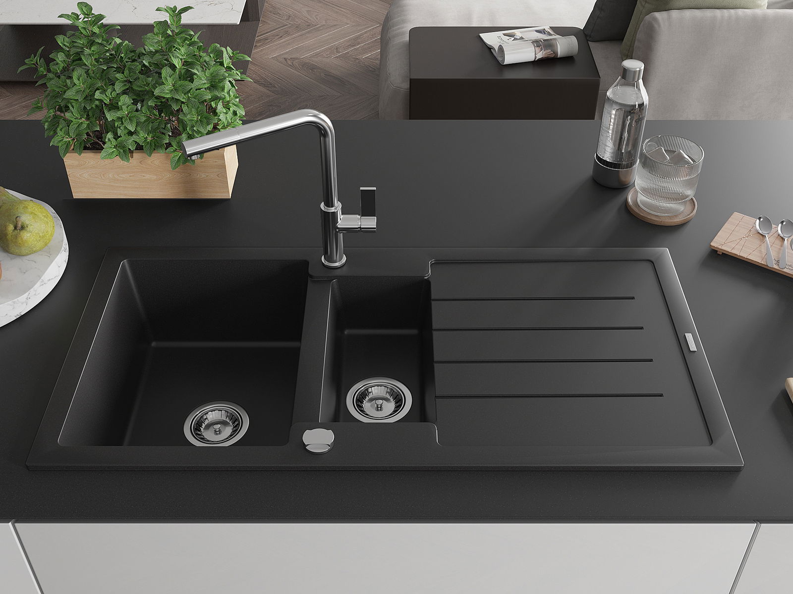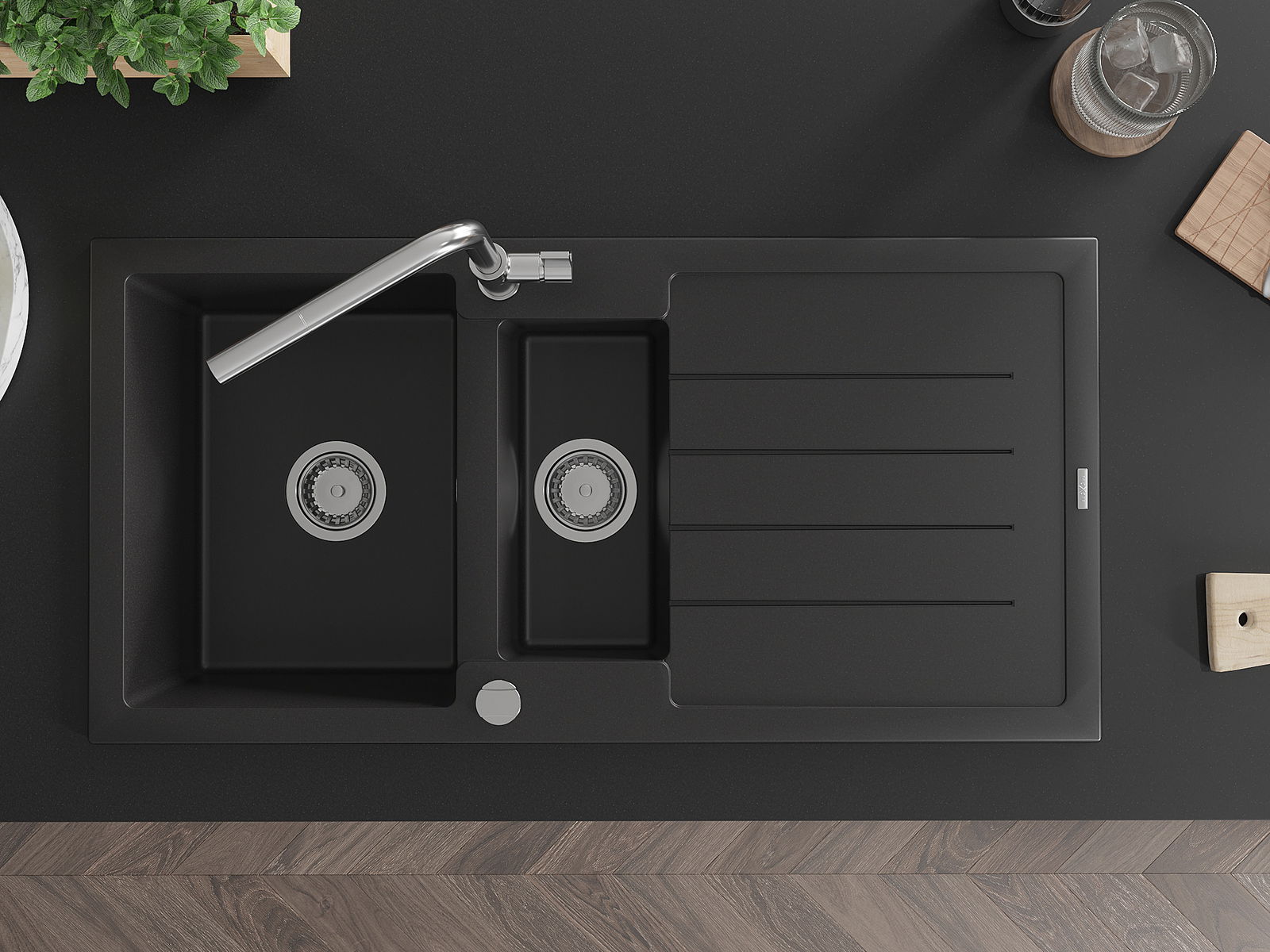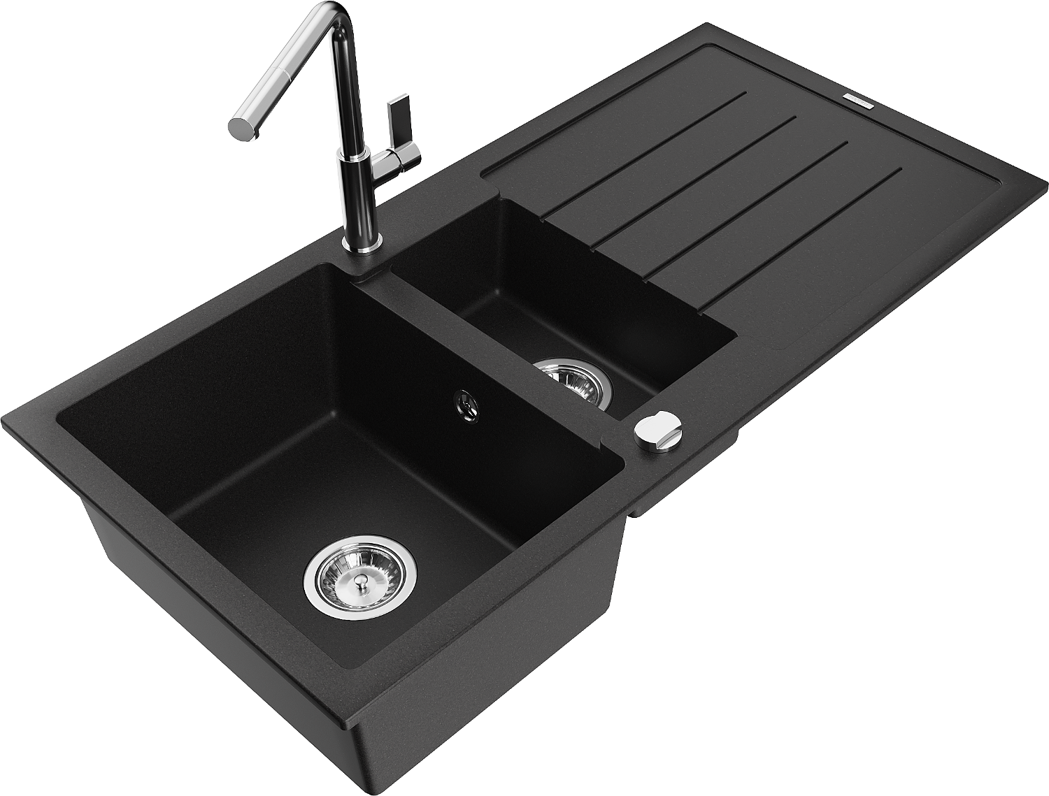 El fregadero está hecho de granito de alta calidad. Es un complemento elegante y, sobre todo, práctico para cualquier cocina, independientemente de su estilo. La alta calidad y durabilidad del granito aseguran un uso prolongado durante años.
