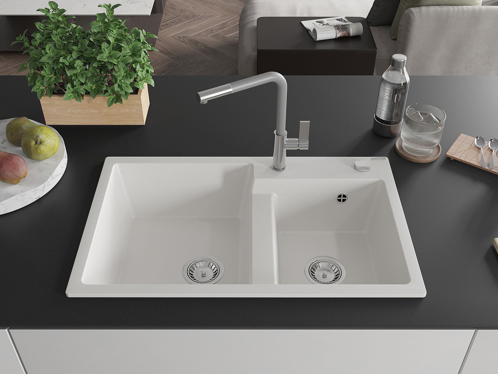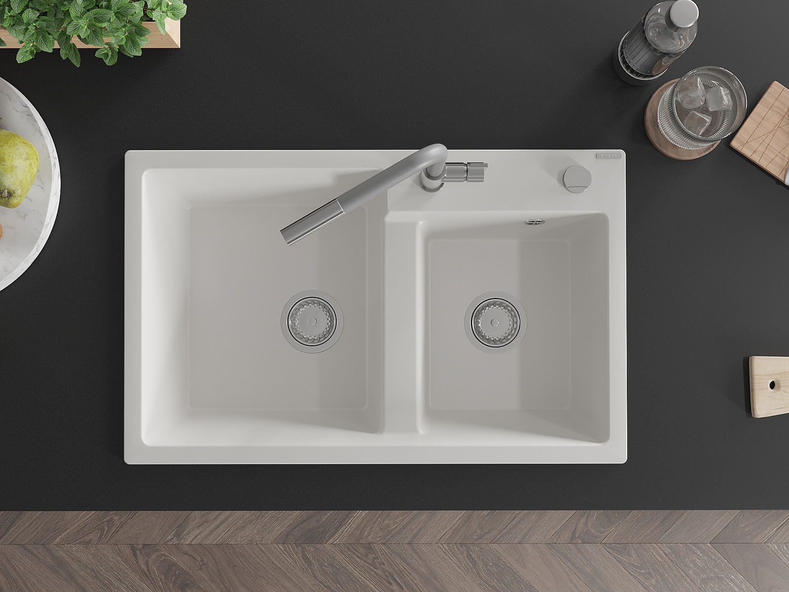 El fregadero está hecho de granito de alta calidad. Constituye un complemento elegante y, sobre todo, práctico para cualquier cocina, independientemente de su estilo. La alta calidad y durabilidad del granito aseguran un uso durante muchos años.
