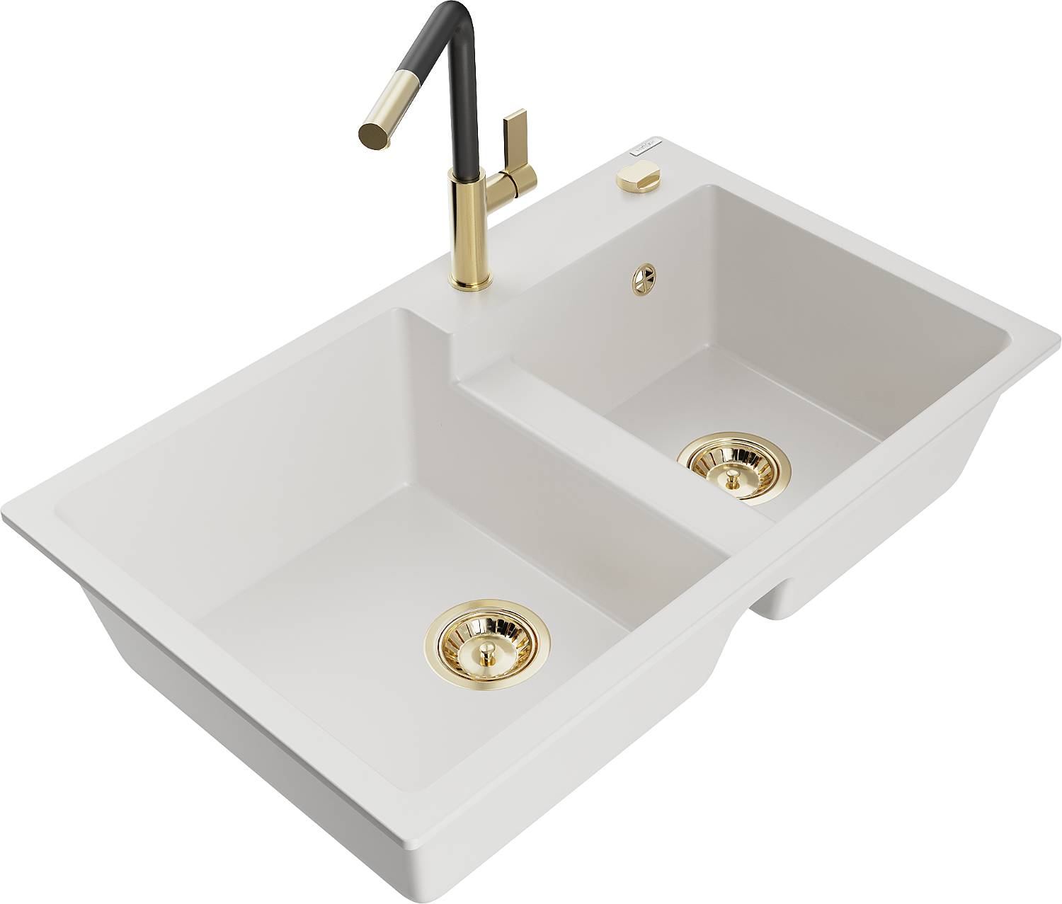 Mexen Tomas fregadero de granito de 2 senos con grifo de cocina Flora, blanco - 6516-20-670401-57-G