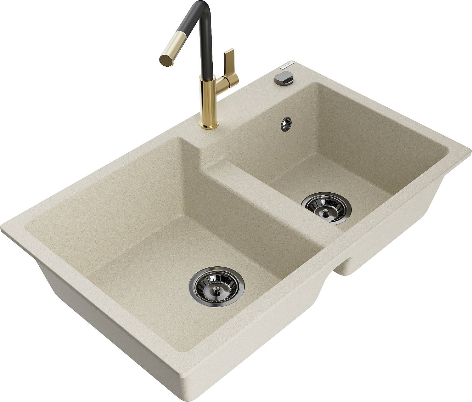Mexen Tomas fregadero de granito de 2 compartimentos con grifo de cocina Flora, beige - 6516-69-670401-57-B