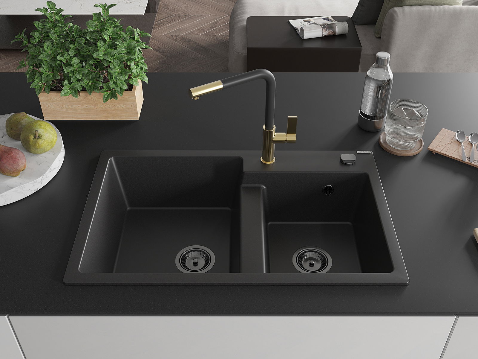 El fregadero está hecho de granito de alta calidad. Constituye un complemento elegante y, sobre todo, práctico para cualquier cocina, independientemente de su estilo. La alta calidad y durabilidad del granito aseguran un uso durante muchos años.