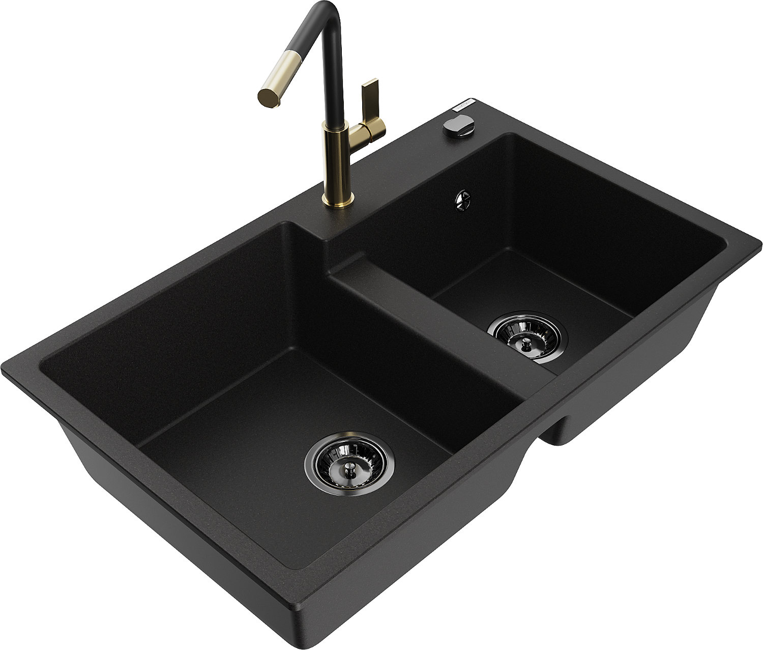 Mexen Tomas fregadero de granito de 2 compartimentos con grifo de cocina Flora, negro - 6516-77-670401-57-B
