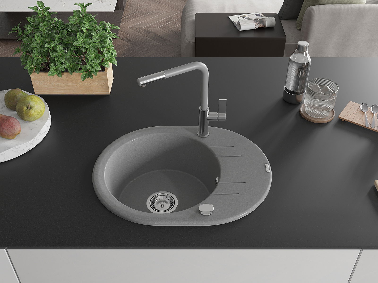 El fregadero está hecho de granito de alta calidad. Constituye un complemento elegante y, sobre todo, práctico para cualquier cocina, independientemente de su estilo. La alta calidad y durabilidad del granito aseguran un uso durante muchos años.