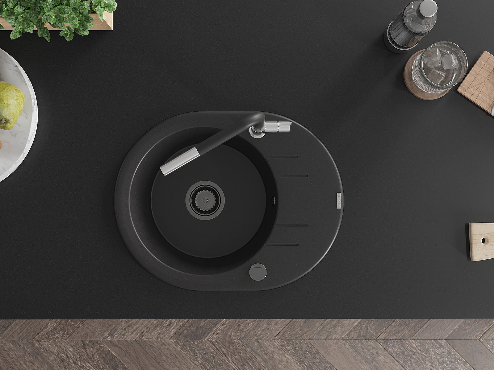 El fregadero está hecho de granito de alta calidad. Constituye un complemento elegante y, sobre todo, práctico para cualquier cocina, independientemente de su estilo. La alta calidad y durabilidad del granito aseguran un uso durante muchos años.