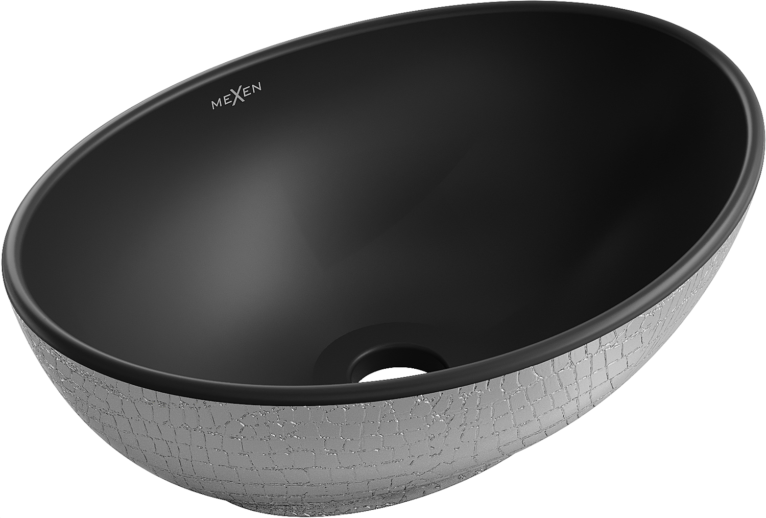 Mexen Elza lavabo sobre encimera 40 x 33 cm, negro mate/patrón de escamas plateado - 21014022