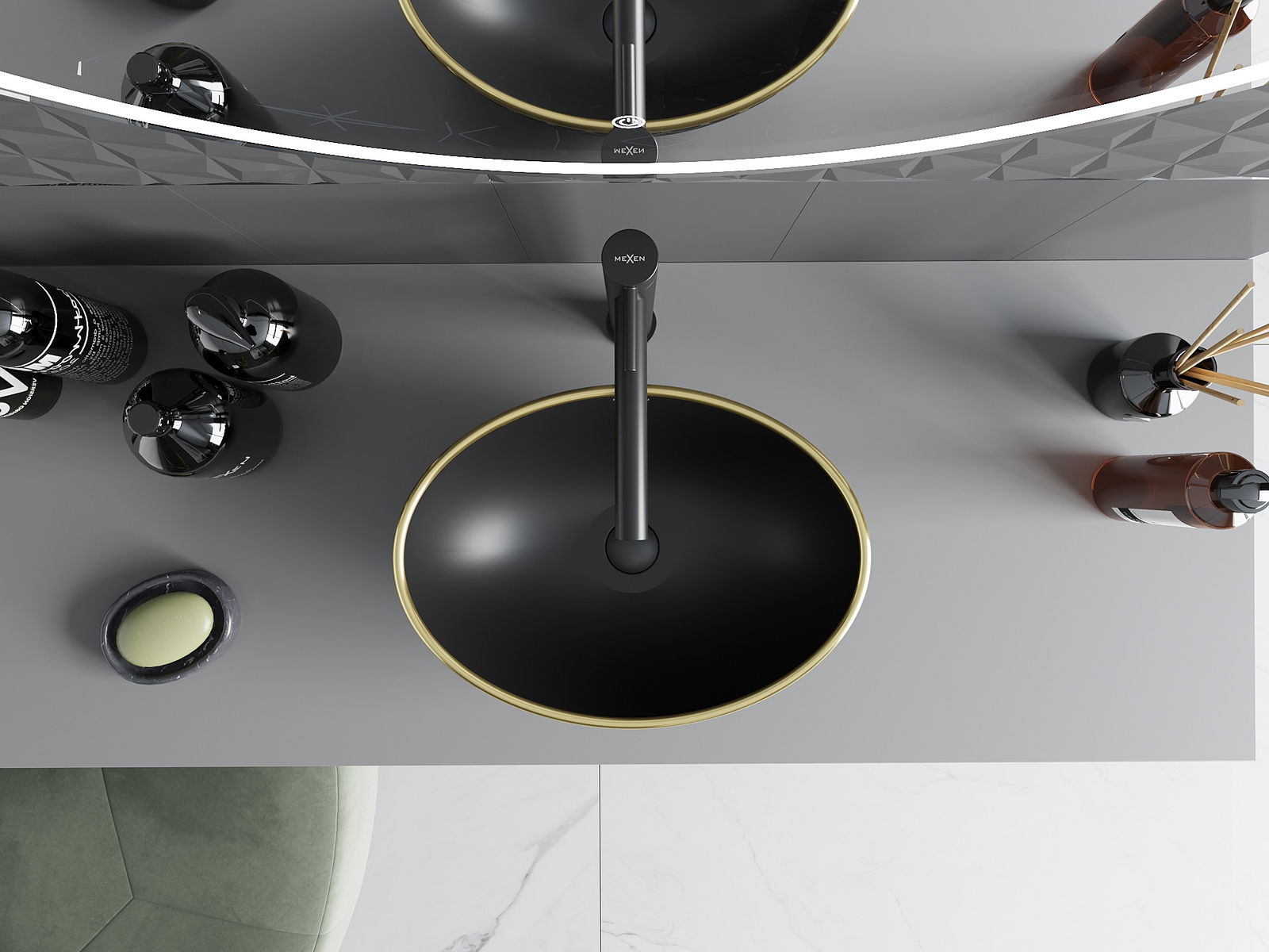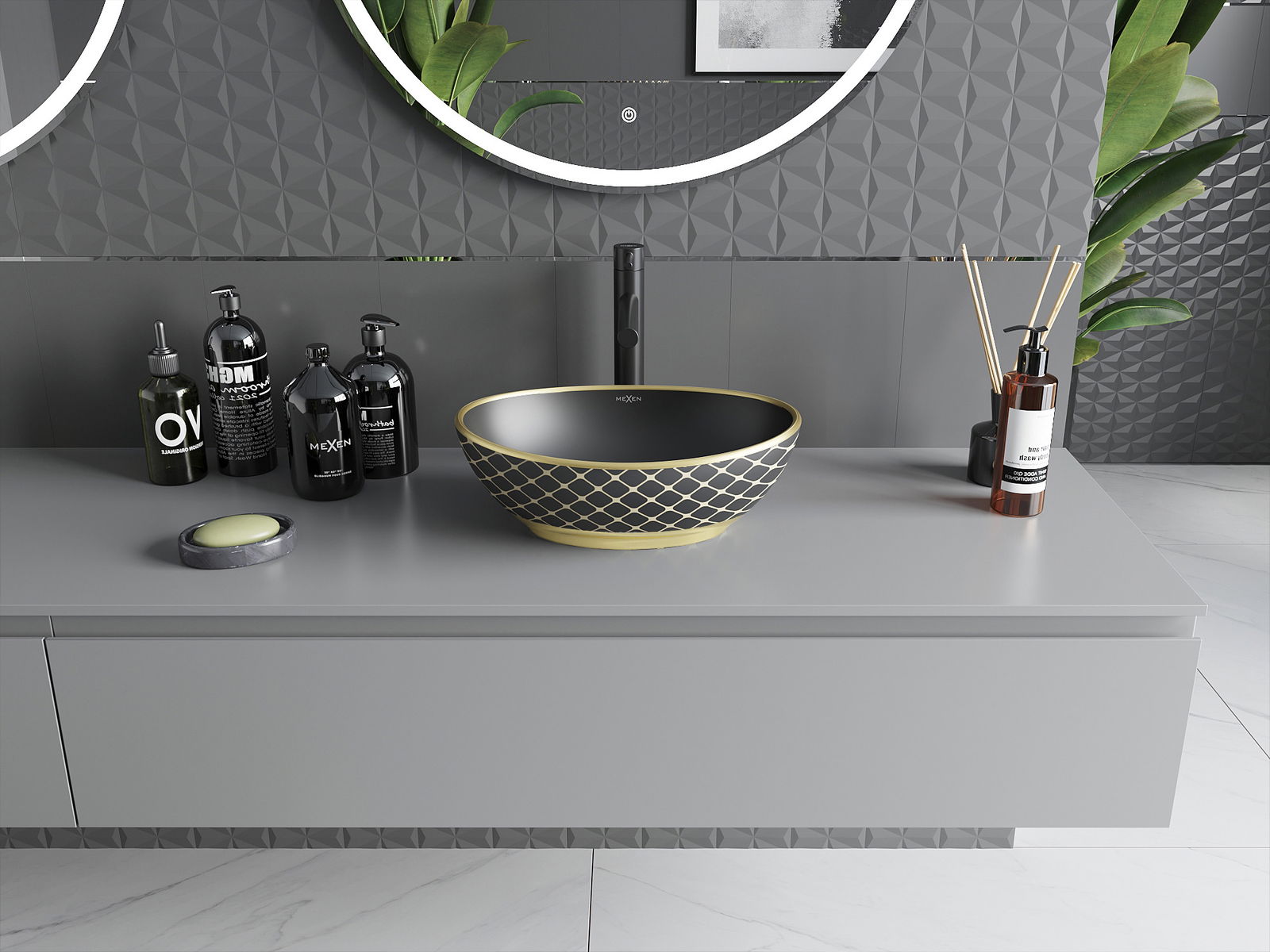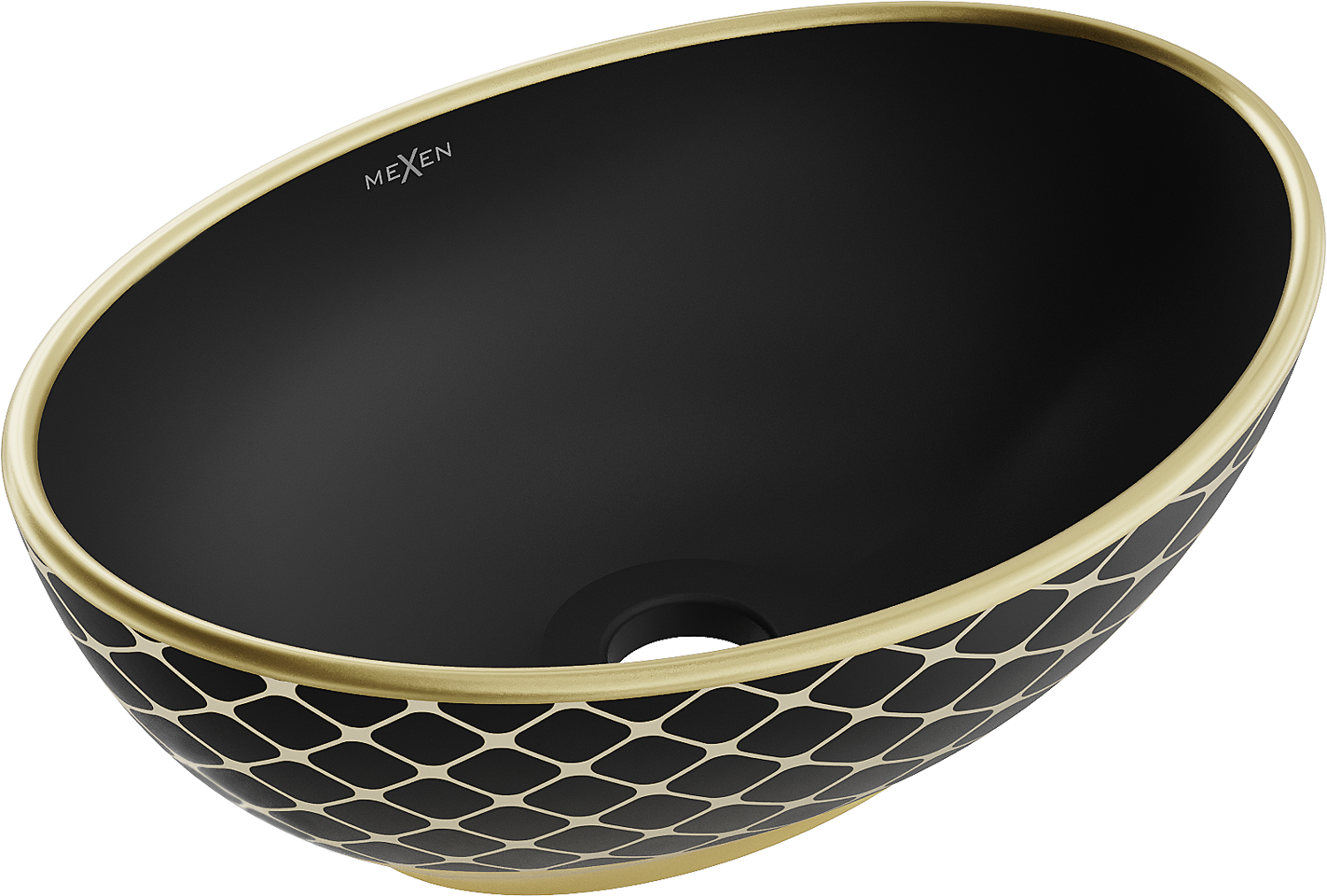 Mexen Elza lavabo de sobreponer 40 x 33 cm, negro mate/diseño de cuadrícula dorado - 21014029
