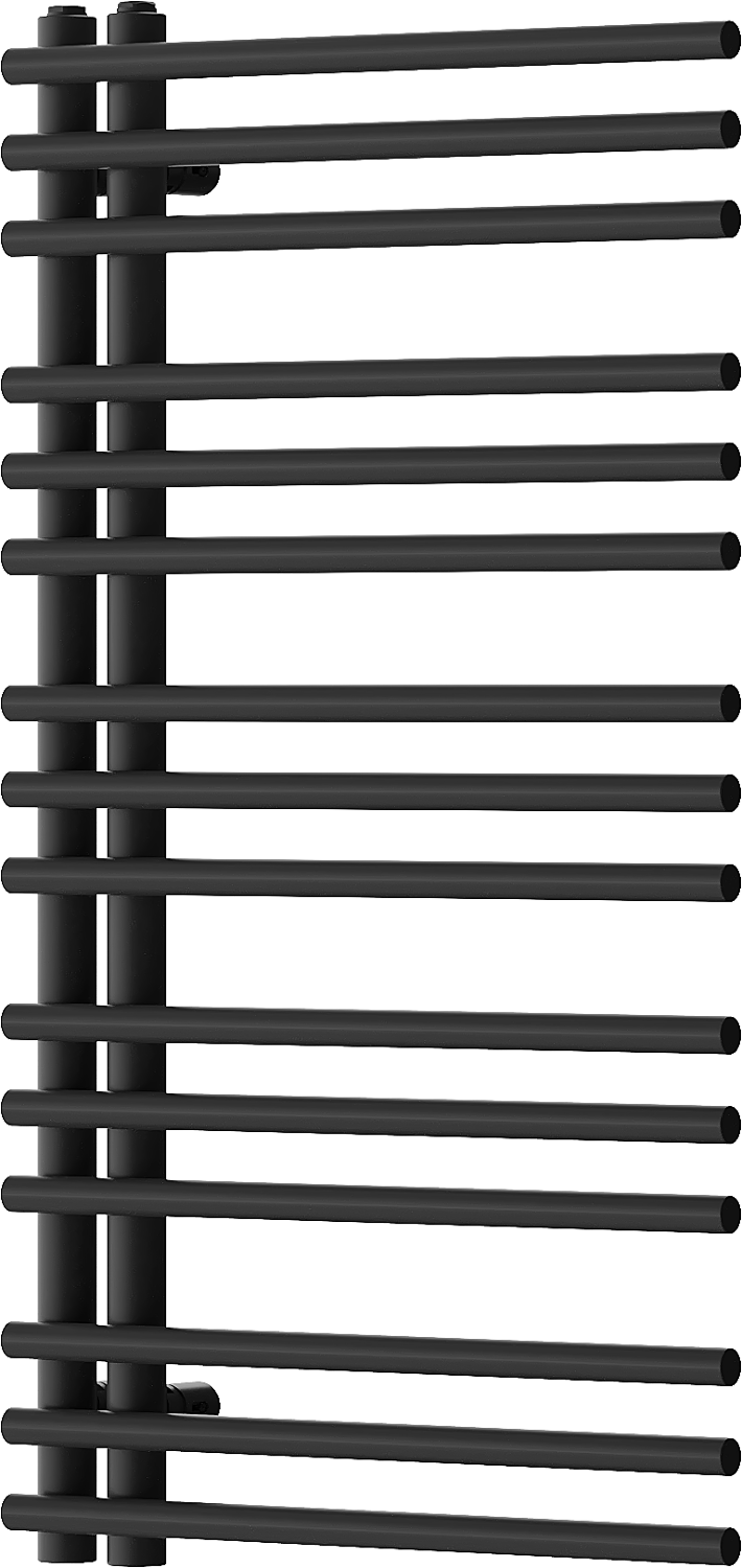 Mexen Neptun es un radiador de baño decorativo con un elegante acabado negro RAL 9005, que complementa perfectamente cualquier baño. Gracias a sus dimensiones de 900 x 500 mm y a su potencia de 369 W, calienta eficazmente la habitación, proporcionando confort térmico en cualquier condición. Fabricado en acero duradero, cuenta con un revestimiento resistente a la corrosión y a altas temperaturas (hasta 95 °C). Ofrece una conexión cómoda con conexiones 4xG ½″ y permite la instalación de una resistencia. El set incluye soportes, kit de montaje, tapones y purgador.