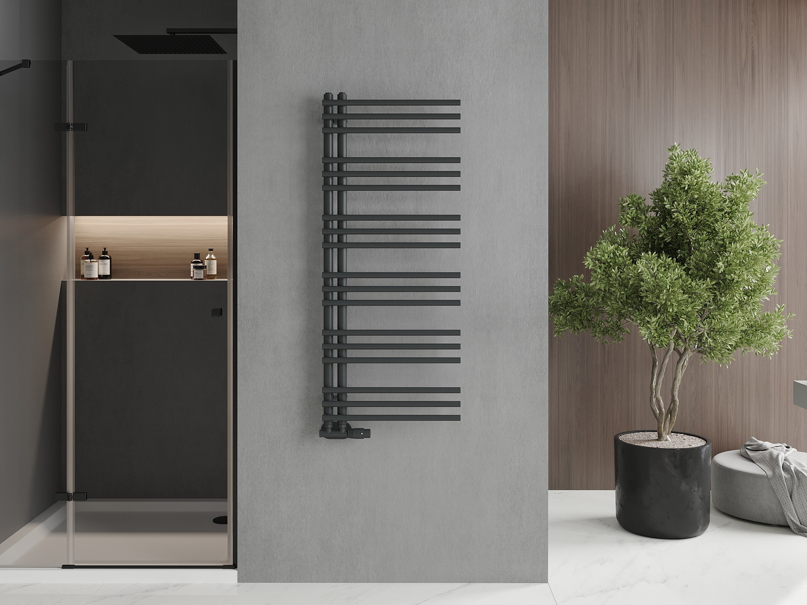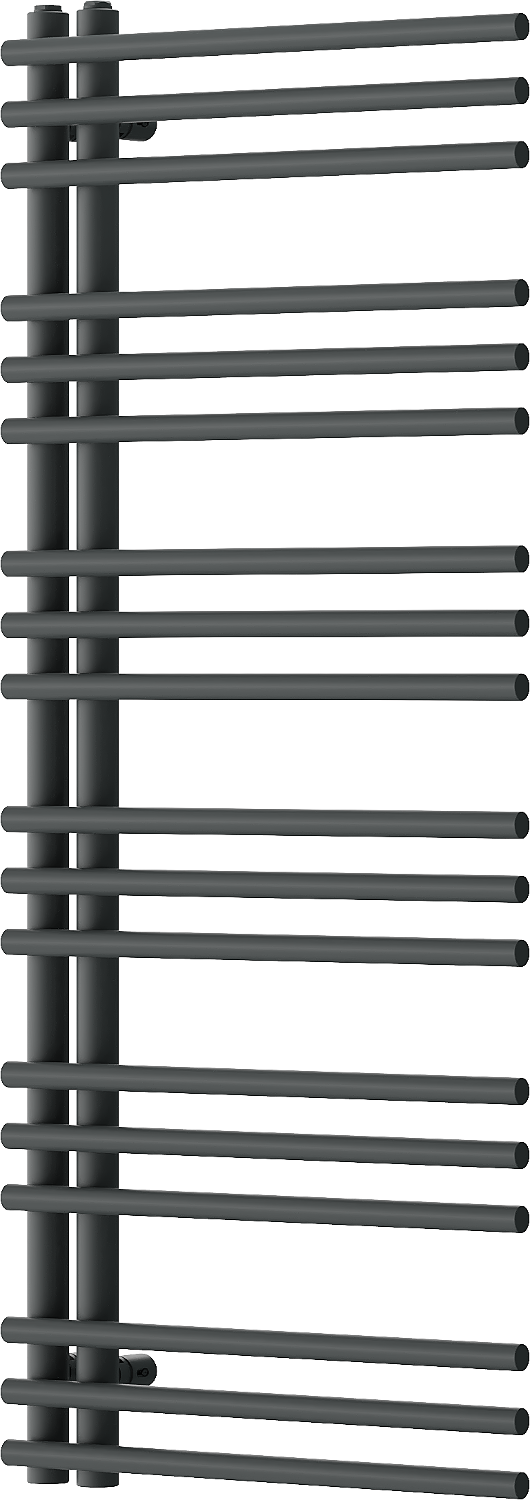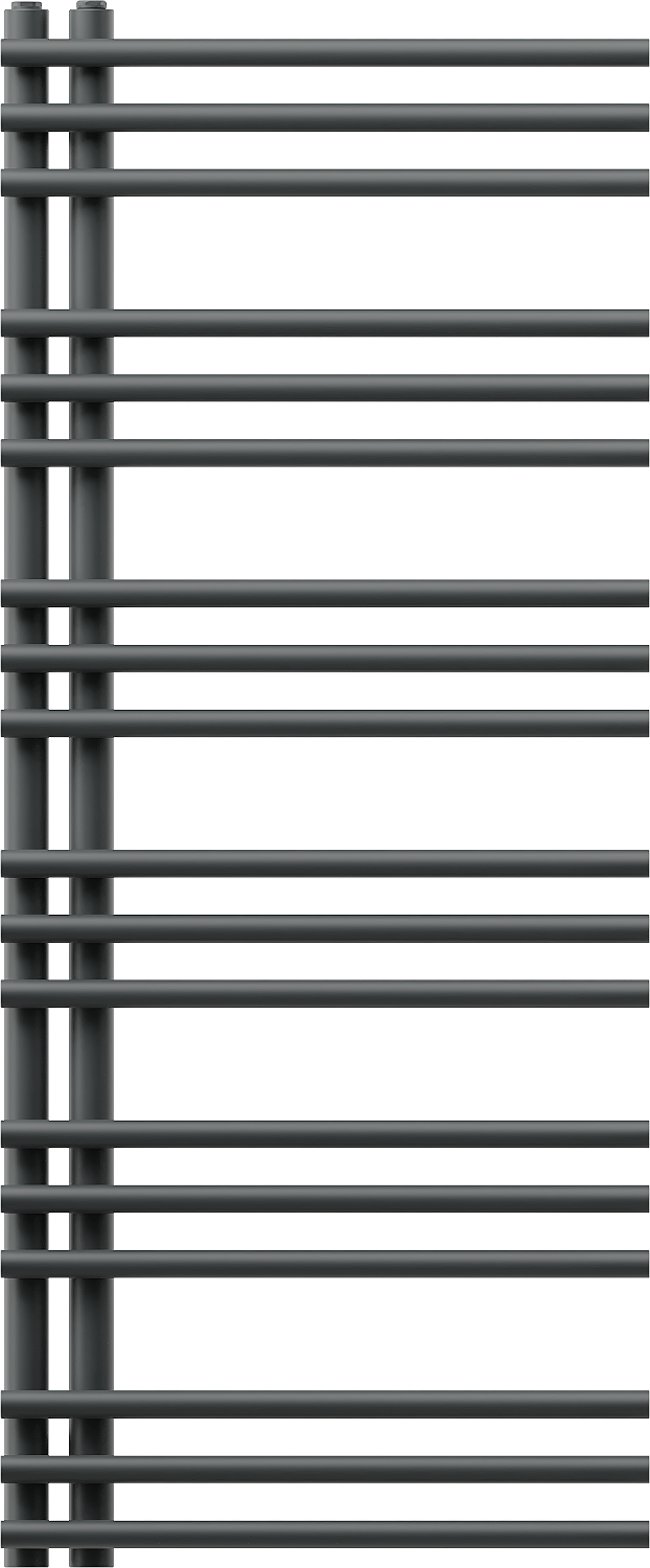 Mexen Neptun es un radiador de baño decorativo de tamaño 1200 x 500 mm y 456 W de potencia. Su color antracita (RAL 7016) y su construcción de acero añaden elegancia a cualquier interior. El radiador se caracteriza por su alta calidad de fabricación, recubrimiento de pintura duradero y resistente a la corrosión, y la posibilidad de instalar una resistencia. Gracias a sus dimensiones compactas, la distancia entre conexiones es de solo 5 cm, y la temperatura máxima de funcionamiento es de 95 °C con presión de trabajo de hasta 0,6 Mpa. El conjunto también incluye soportes, kit de montaje, tapones y purgador.