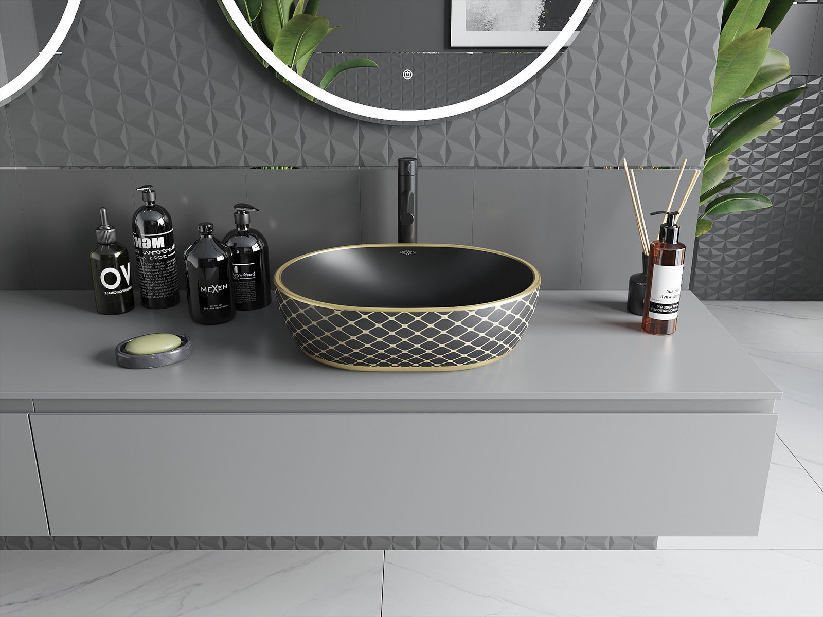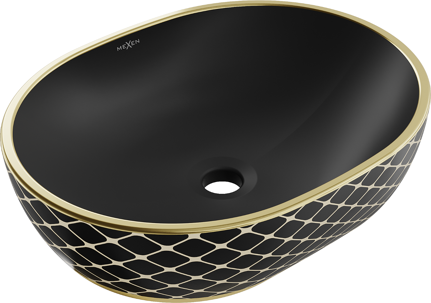 Mexen Viki lavabo de encimera 48 x 35 cm, negro mate/diseño de cuadrícula dorado - 21054879