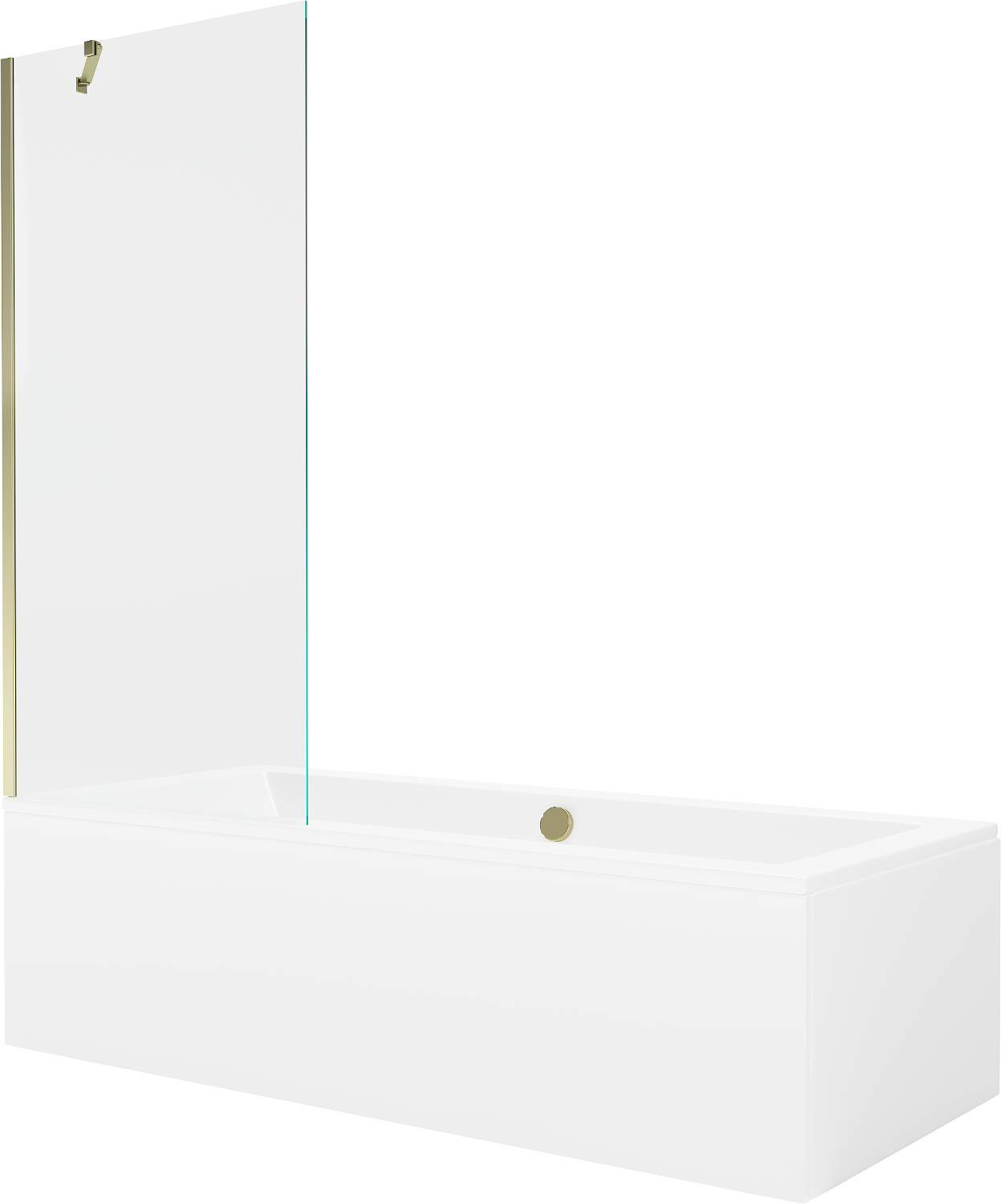 Mexen Cube bañera rectangular de 170 x 80 cm con revestimiento y pantalla de 1 hoja de 80 cm, transparente, dorada