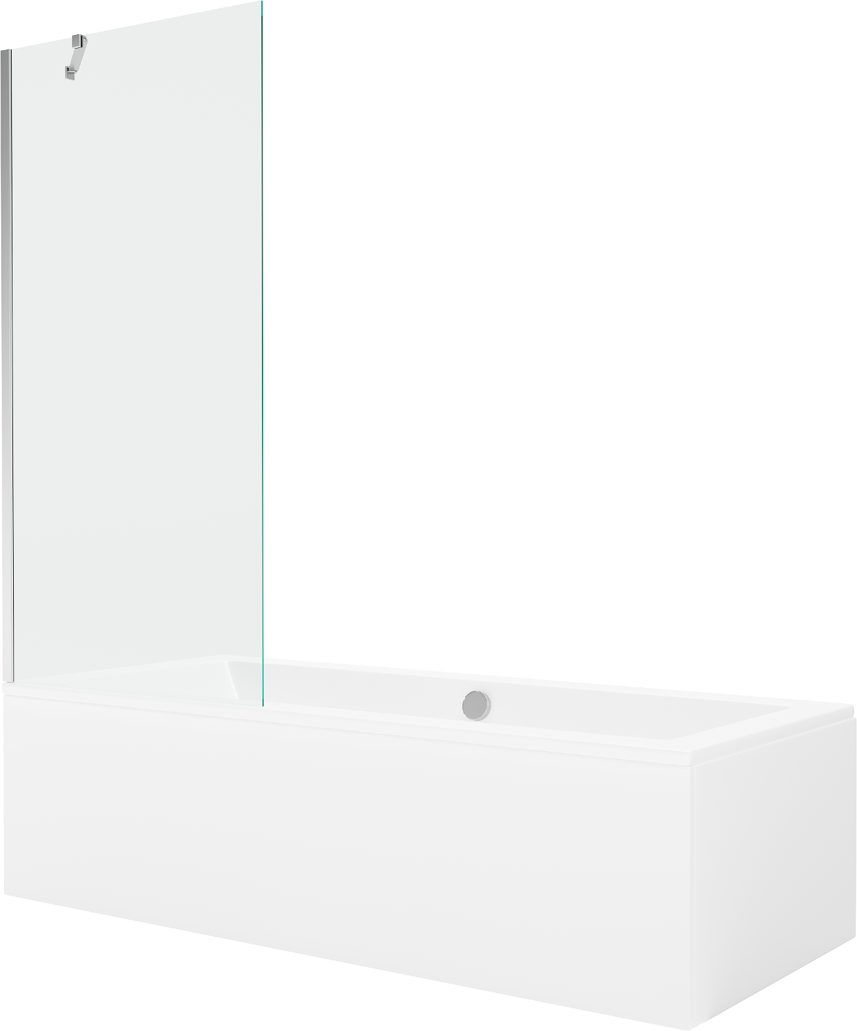 Mexen Cube bañera rectangular 180 x 80 cm con panel y mampara de 1 hoja 80 cm, transparente, cromo - 550518080X9508000001