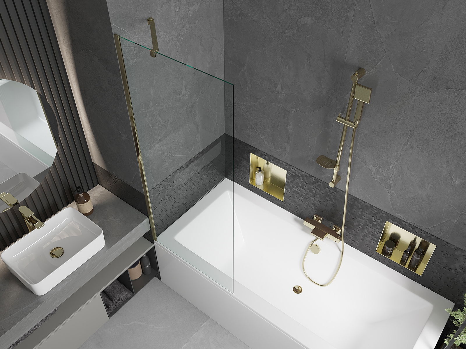 Protección efectiva contra el derrame de agua durante el baño. La mampara tiene juntas que se ajustan perfectamente a la superficie del vidrio y al borde de la bañera. Solución funcional que garantiza seguridad y facilidad de limpieza.