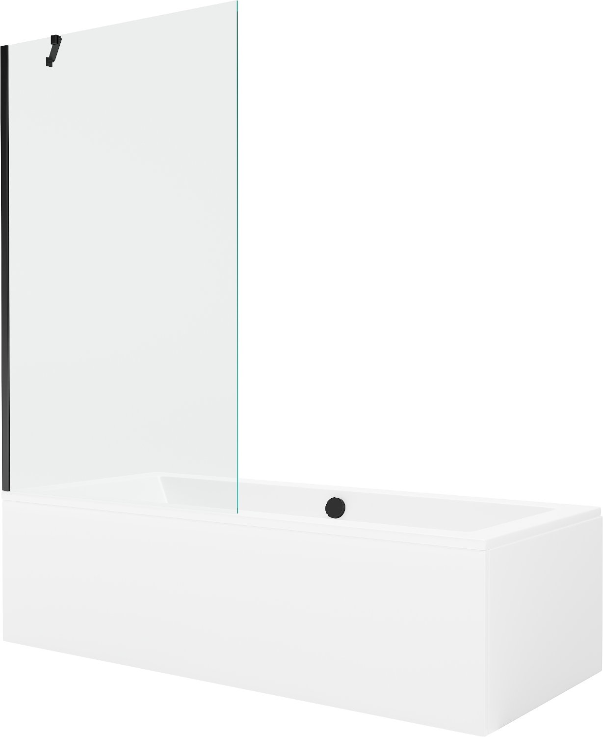 Mexen Cube bañera rectangular 180 x 80 cm con panel y mampara de 1 hoja de 100 cm, transparente, negro - 550518080X9510000070