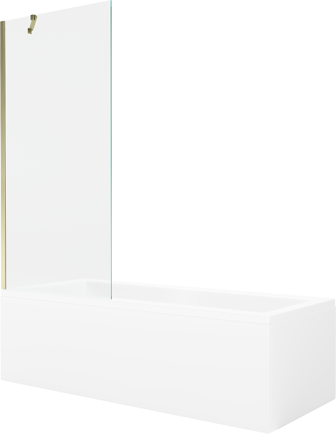 Mexen Cubik bañera rectangular 150 x 70 cm con panel y mampara de 1 hoja de 80 cm, transparente, dorado - 550315070X9508000050