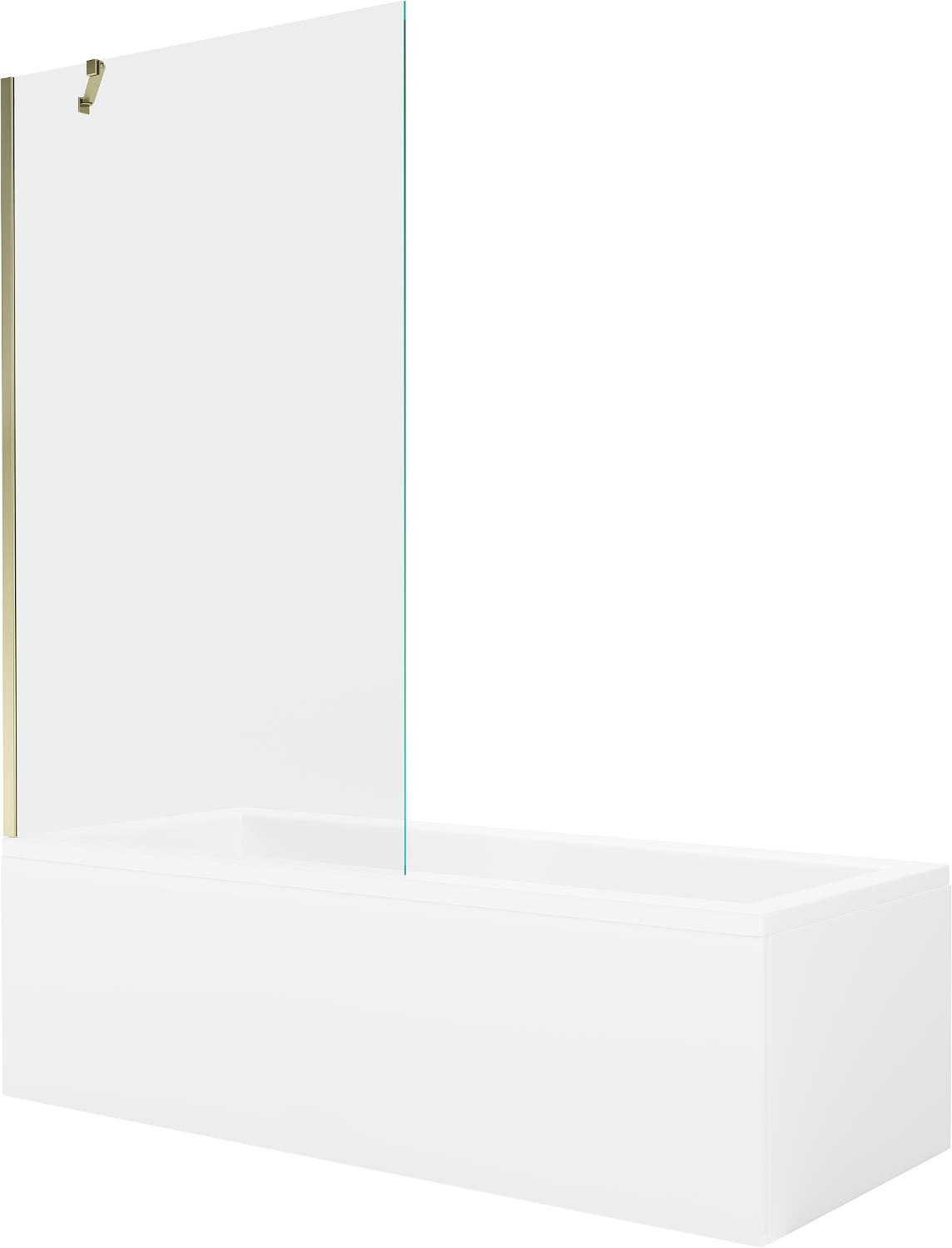 Mexen Cubik bañera rectangular 170 x 70 cm con panel frontal y mampara de 1 hoja 100 cm, transparente, dorado