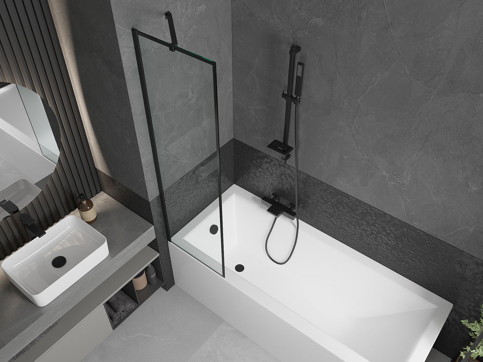 Mexen Cubik bañera rectangular 170 x 70 cm con revestimiento y mampara de 1 hoja 50 cm, diseño negro - 550317070X9505007070