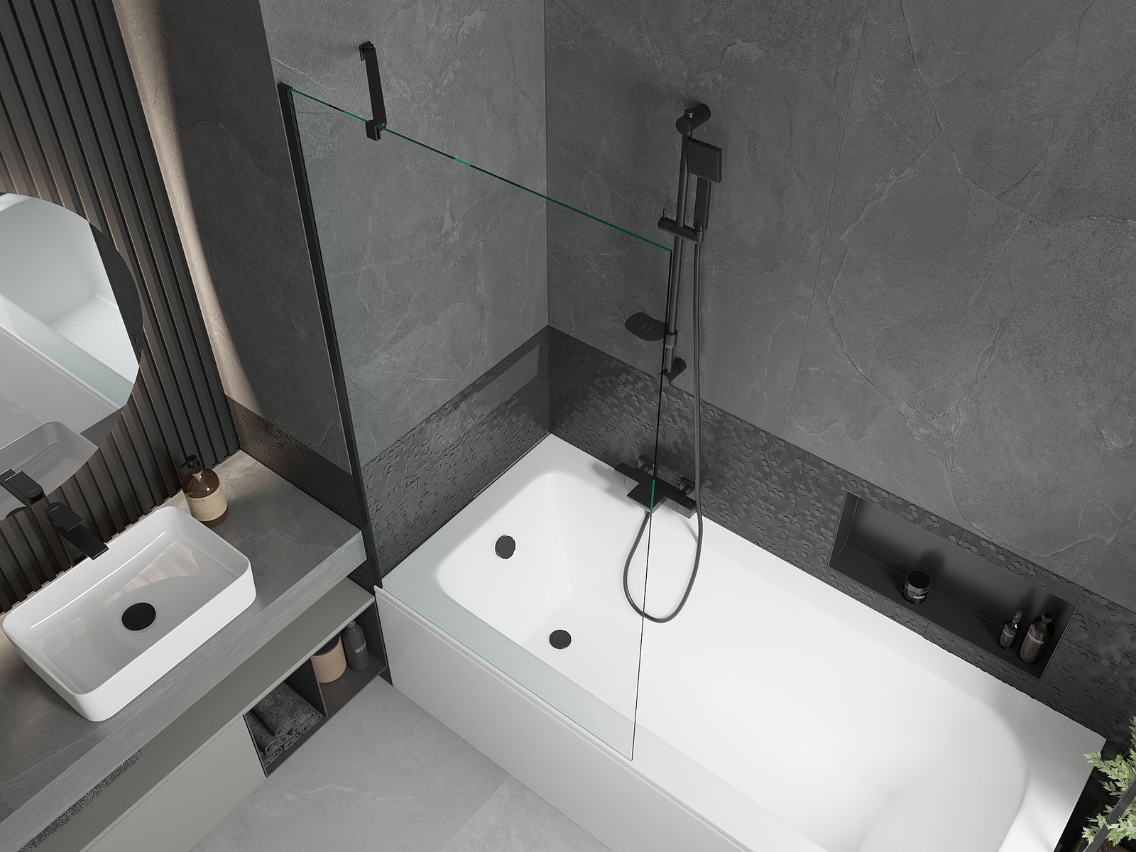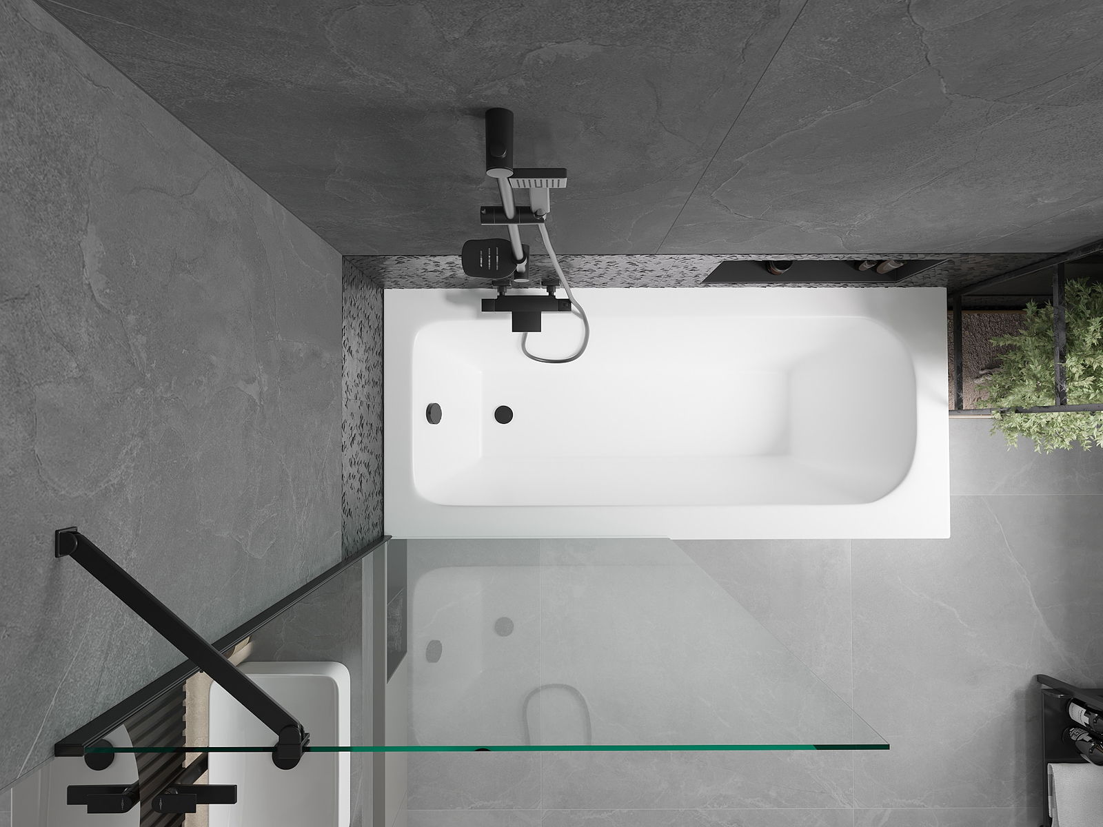 Mexen Vega bañera rectangular 170 x 70 cm con panel y mampara de 1 hoja de 90 cm, transparente, negro - 550117070X9509000070