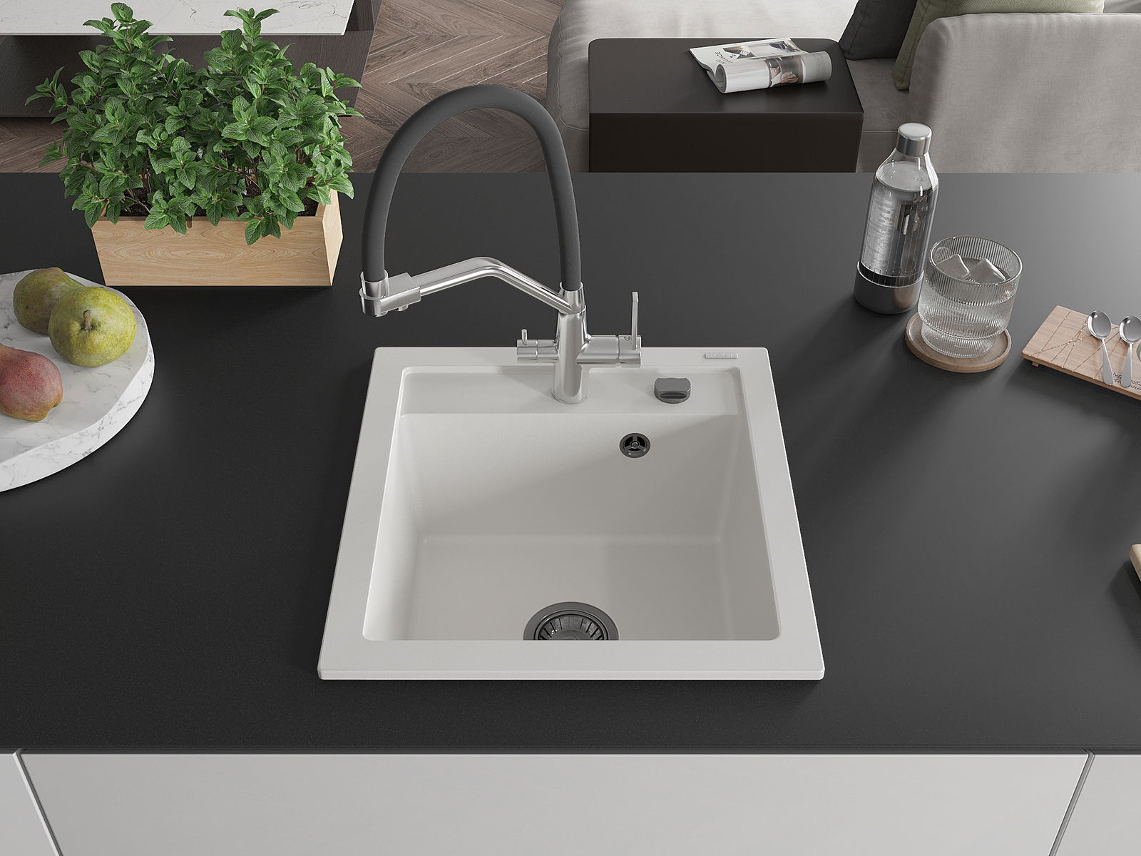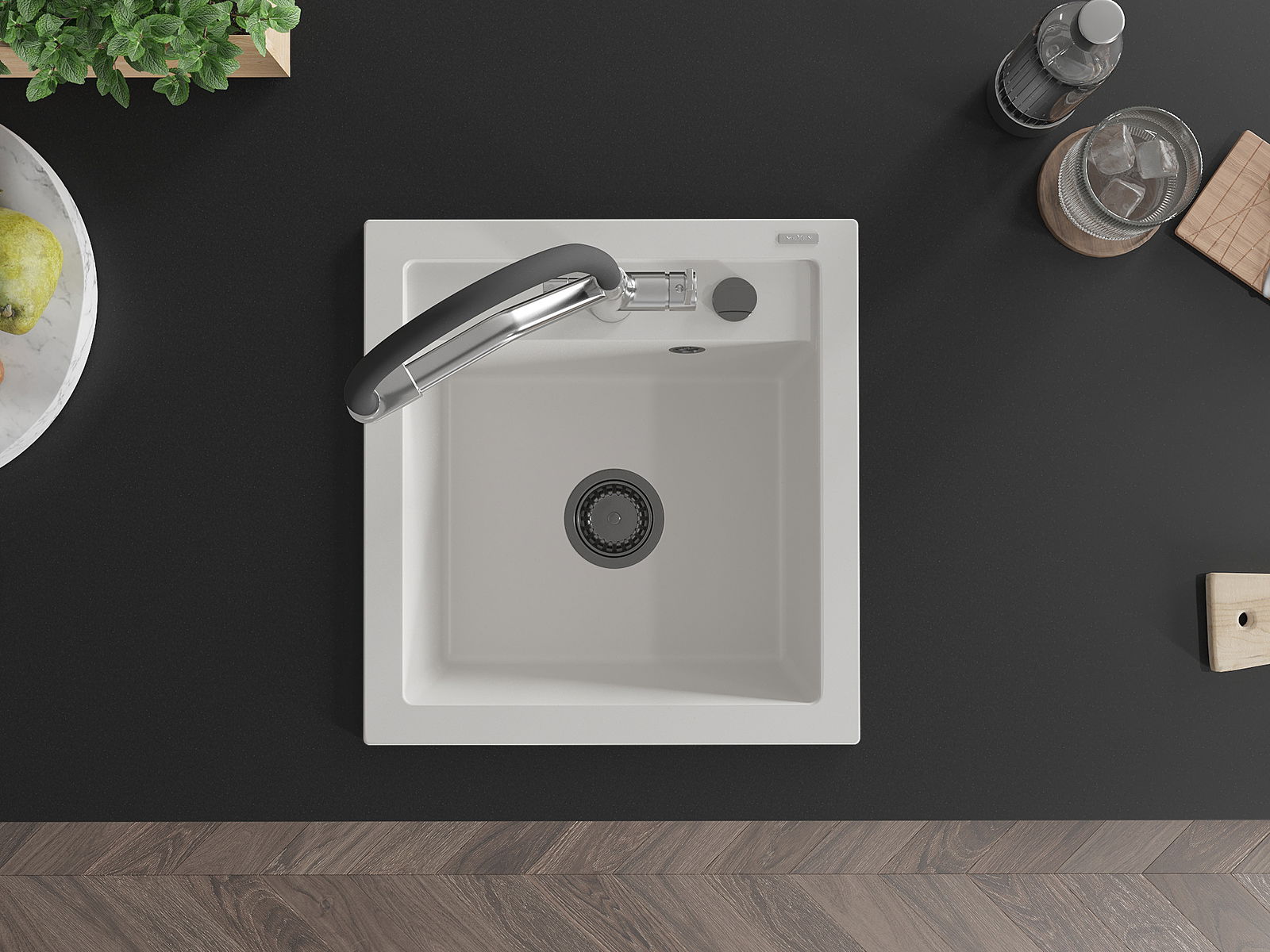 El fregadero está hecho de granito de alta calidad. Es un complemento elegante y, sobre todo, práctico para cualquier cocina, independientemente de su estilo. La alta calidad y durabilidad del granito aseguran un uso prolongado durante años.