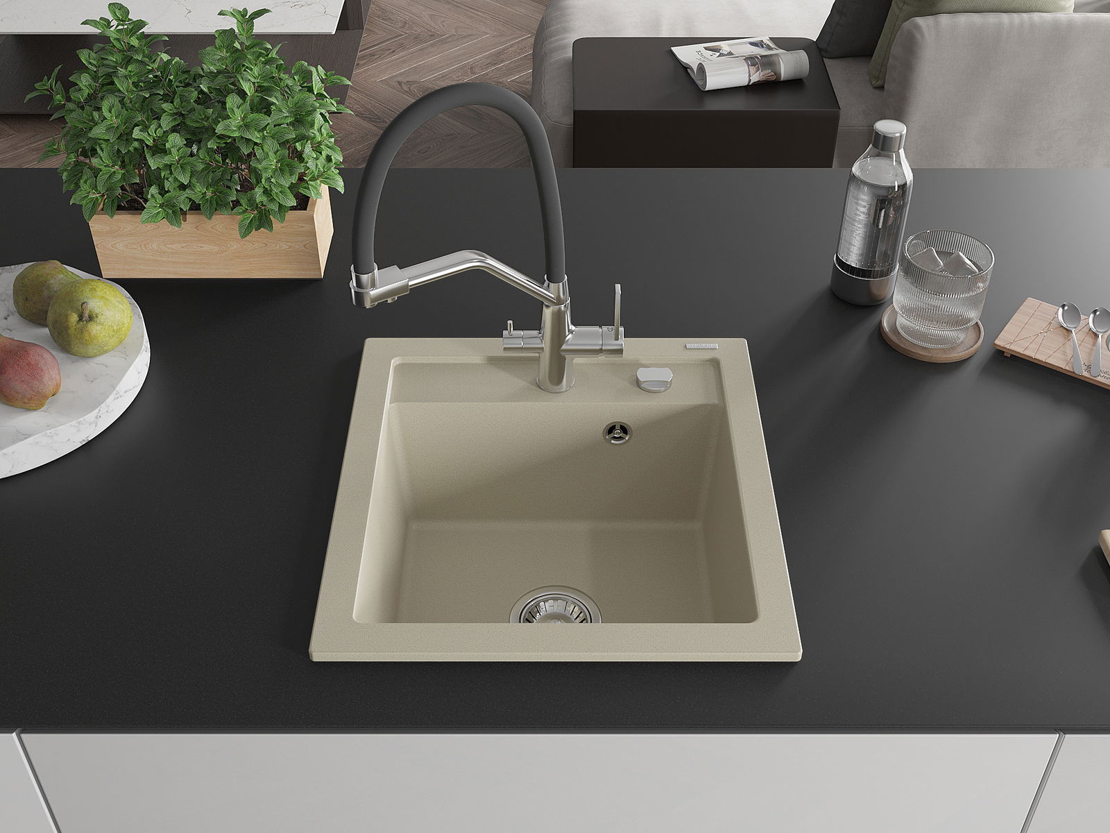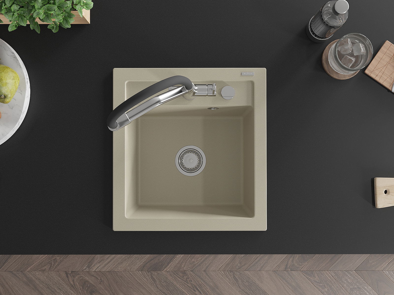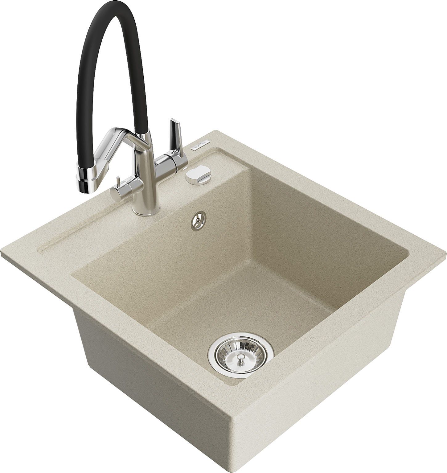 El fregadero está hecho de granito de alta calidad. Es un complemento elegante y, sobre todo, práctico para cualquier cocina, independientemente de su estilo. La alta calidad y durabilidad del granito aseguran un uso prolongado durante años.