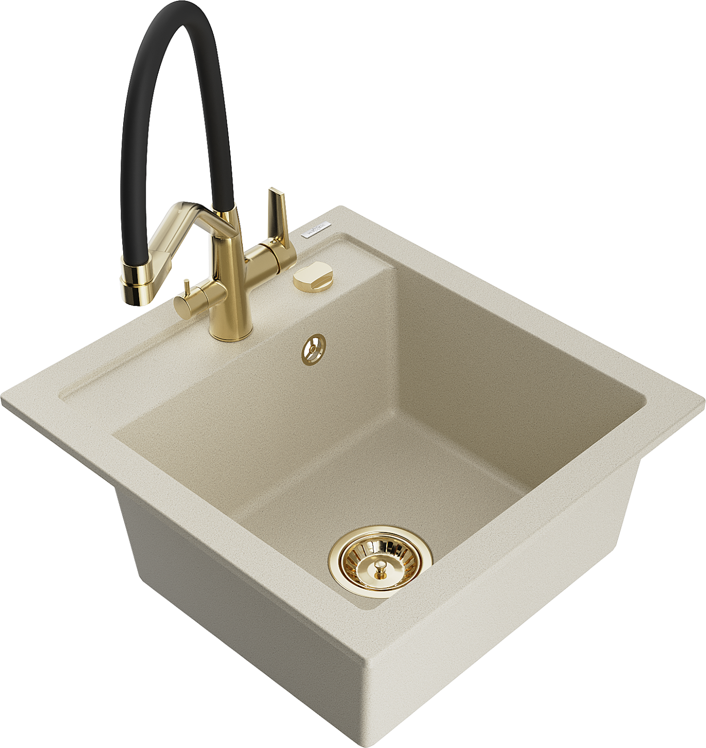 Mexen Vito fregadero de granito de 1 cámara con grifo de cocina Duo, beige - 6503-69-671701-57-G