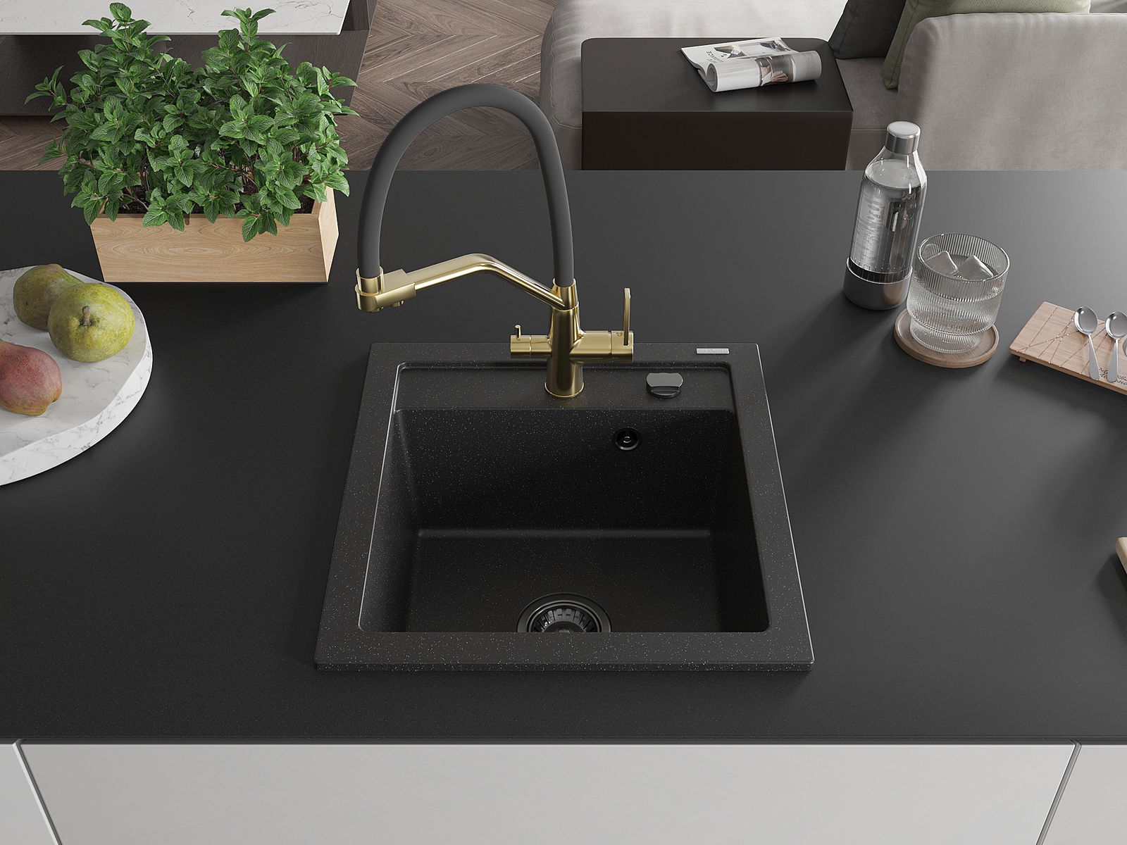 El fregadero está hecho de granito de alta calidad. Es un complemento elegante y, sobre todo, práctico para cualquier cocina, independientemente de su estilo. La alta calidad y durabilidad del granito aseguran un uso prolongado durante años.