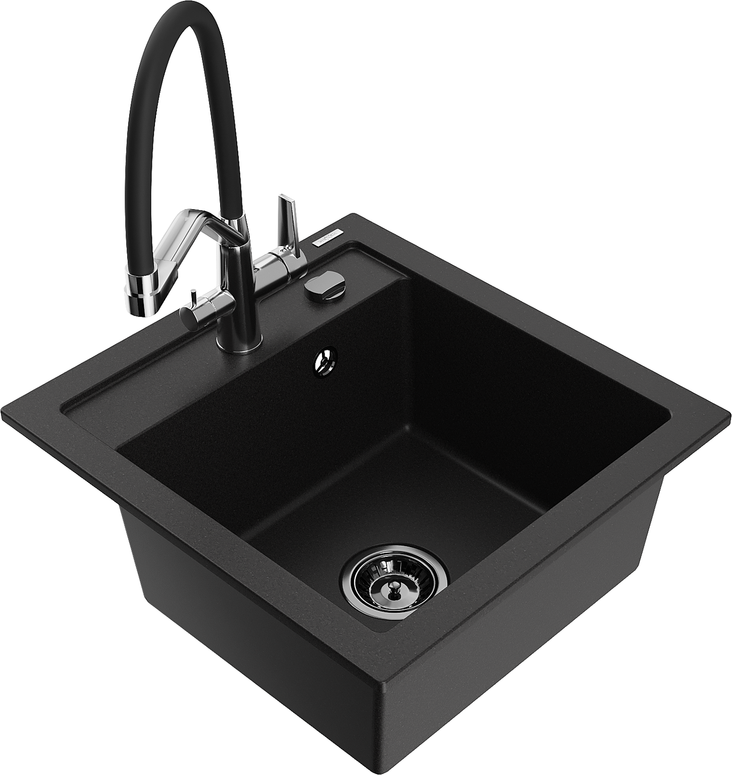 Mexen Vito fregadero de granito de 1 compartimento con grifo de cocina Duo, negro - 6503-77-671701-07-B