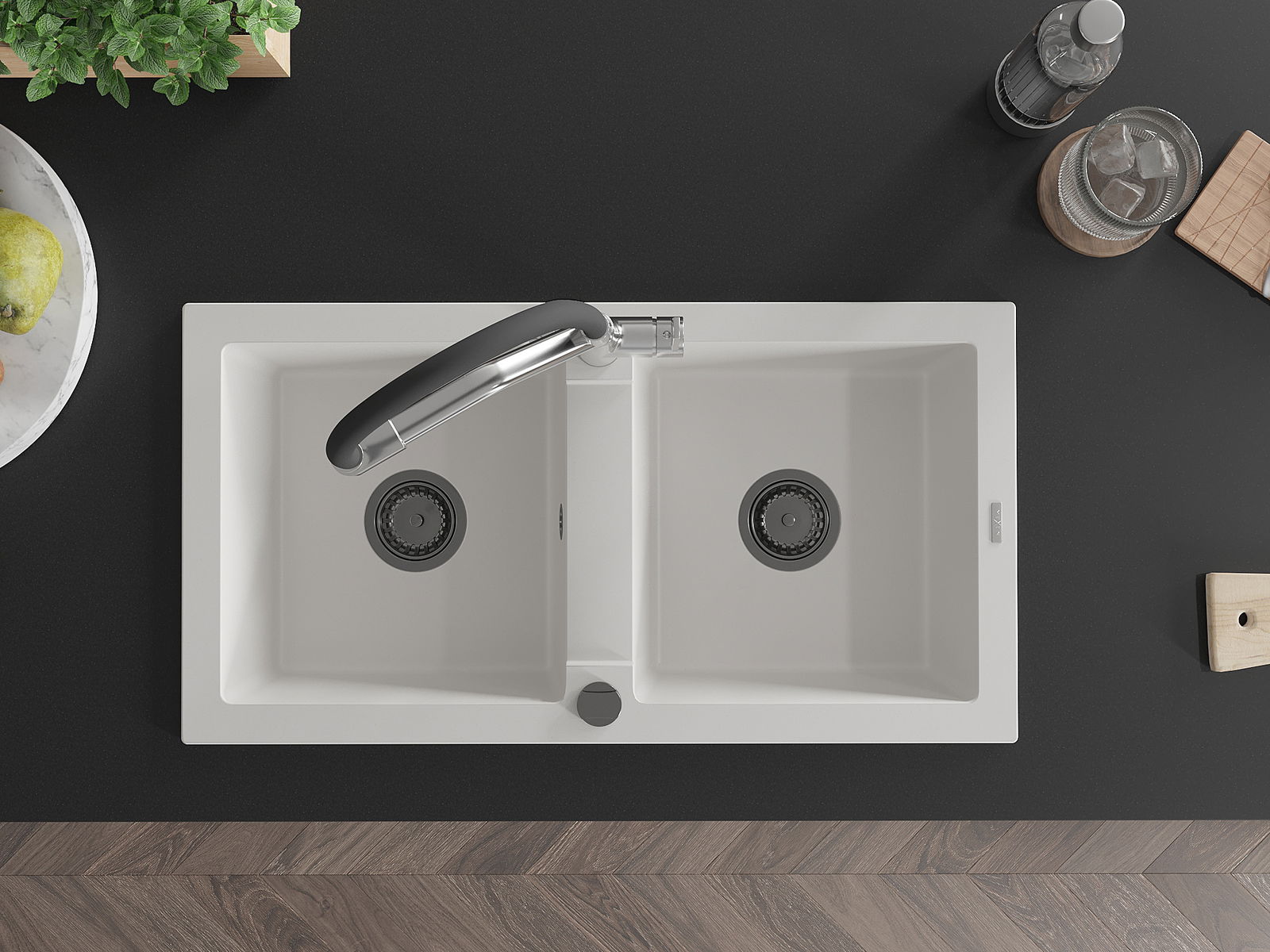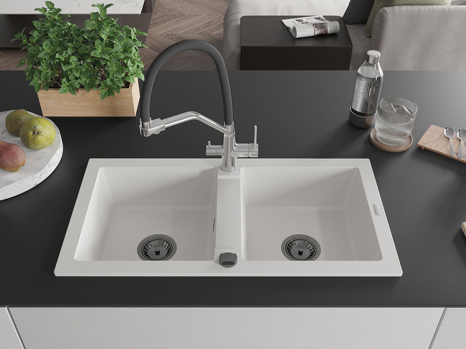 El fregadero está hecho de granito de alta calidad. Constituye un complemento elegante y, sobre todo, práctico para cualquier cocina, independientemente de su estilo. La alta calidad y durabilidad del granito aseguran un uso durante muchos años.