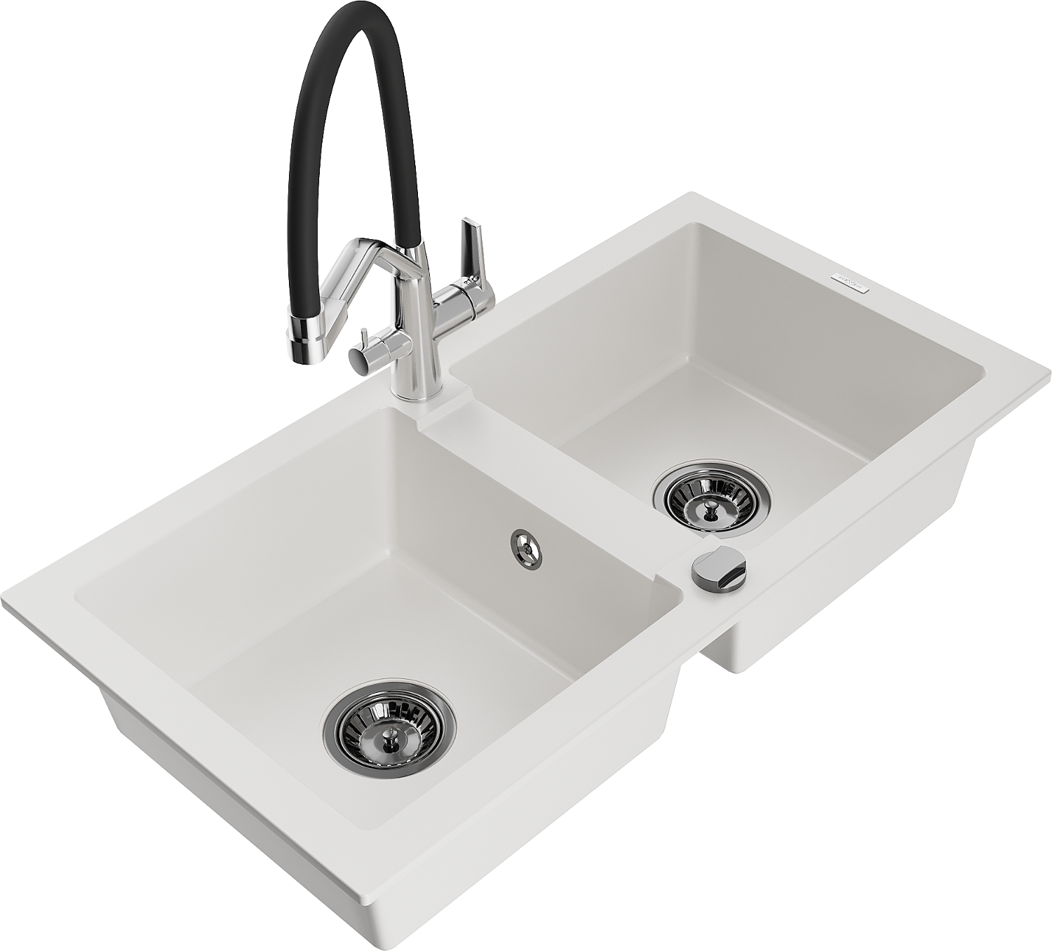 Mexen Mario fregadero de granito de 2 compartimentos con grifo de cocina Duo, blanco - 6504-20-671701-07-B