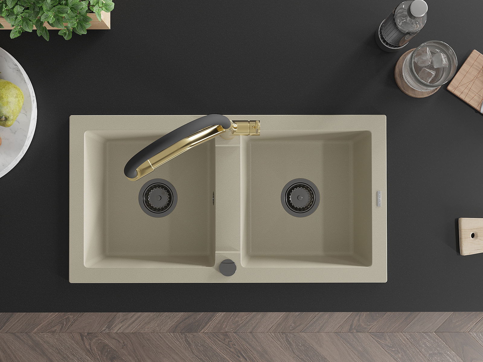 Mexen Mario fregadero de granito de 2 senos con grifo de cocina Duo, beige - 6504-69-671701-57-B