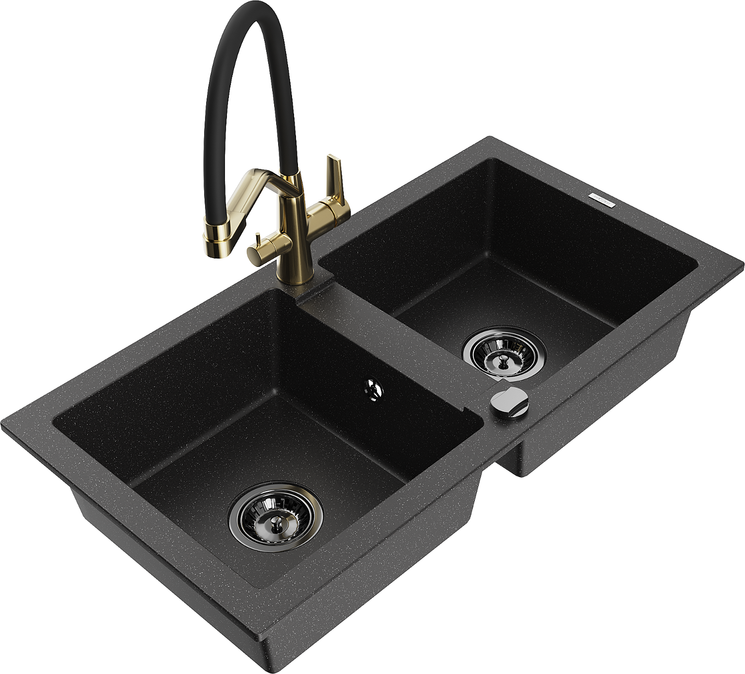 Mexen Mario fregadero de cocina de granito de 2 senos con grifo de cocina Duo, negro/metálico plateado - 6504-73-671701-57-B
