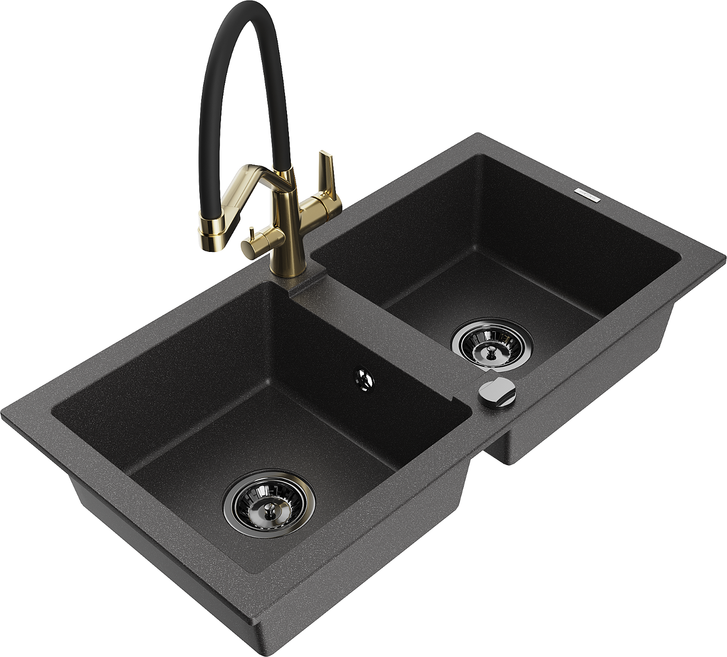 Mexen Mario fregadero de granito de 2 senos con grifo de cocina Duo, negro moteado - 6504-76-671701-57-B