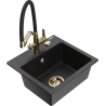 Mexen Milo fregadero de granito 1-cubeta con grifo de cocina Duo, negro/dorado metálico - 6505-75-671701-57-G