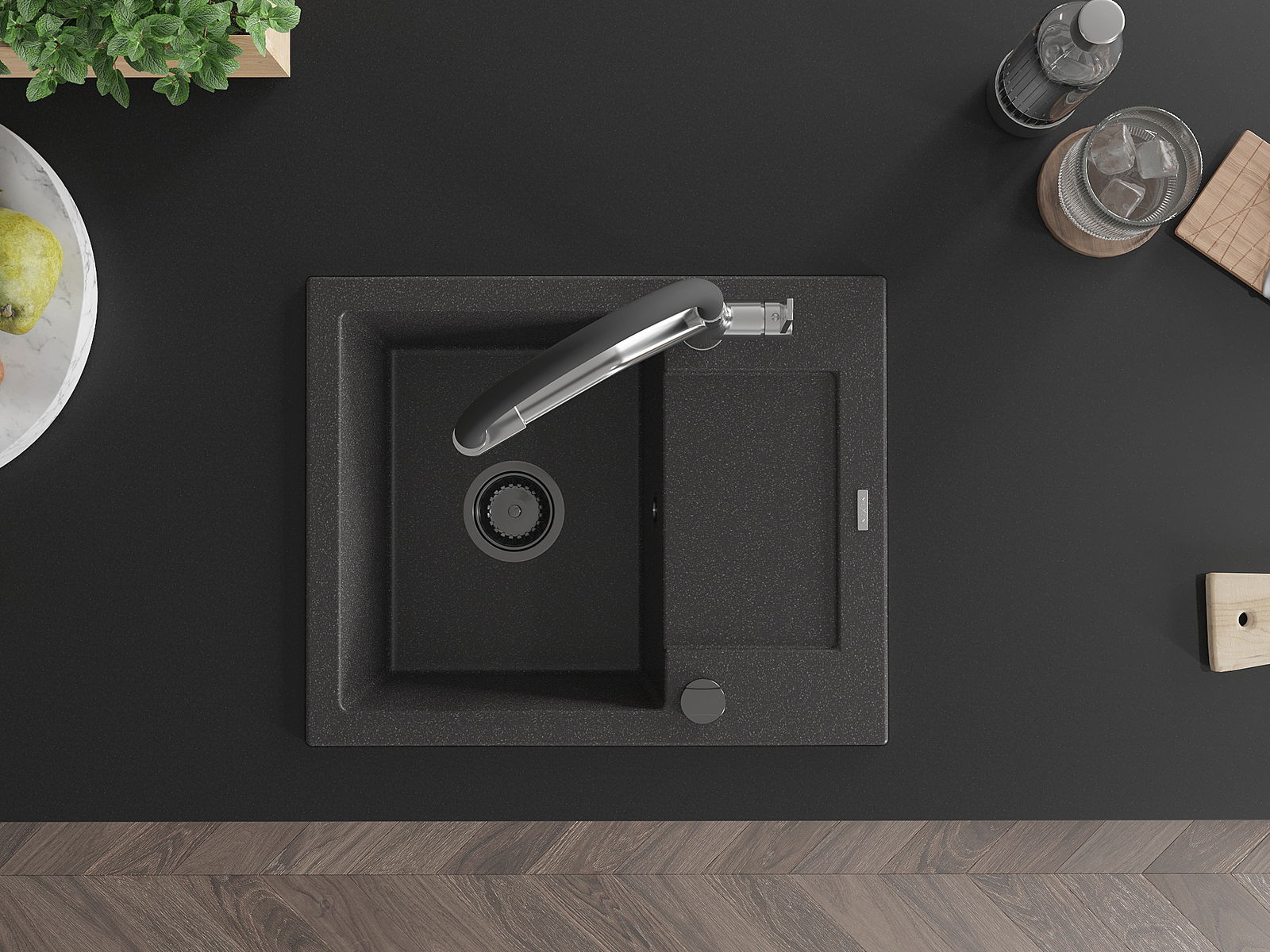 El fregadero está hecho de granito de alta calidad. Constituye un complemento elegante y, sobre todo, práctico para cualquier cocina, independientemente de su estilo. La alta calidad y durabilidad del granito aseguran un uso durante muchos años.