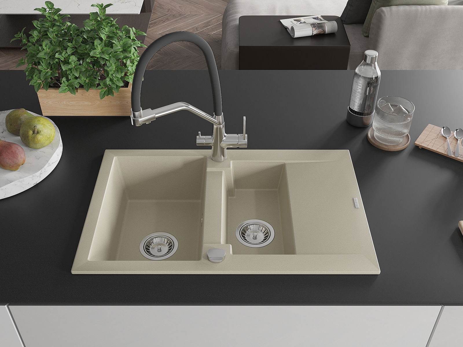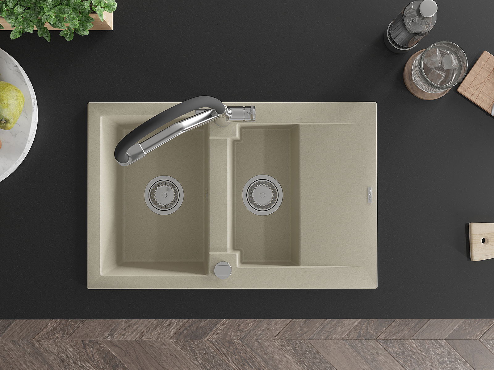 El fregadero está hecho de granito de alta calidad. Constituye un complemento elegante y, sobre todo, práctico para cualquier cocina, independientemente de su estilo. La alta calidad y durabilidad del granito aseguran un uso durante muchos años.