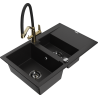 Mexen Gaspar fregadero de granito de 1,5 compartimientos con escurridor y grifo de cocina Duo, negro/dorado metálico