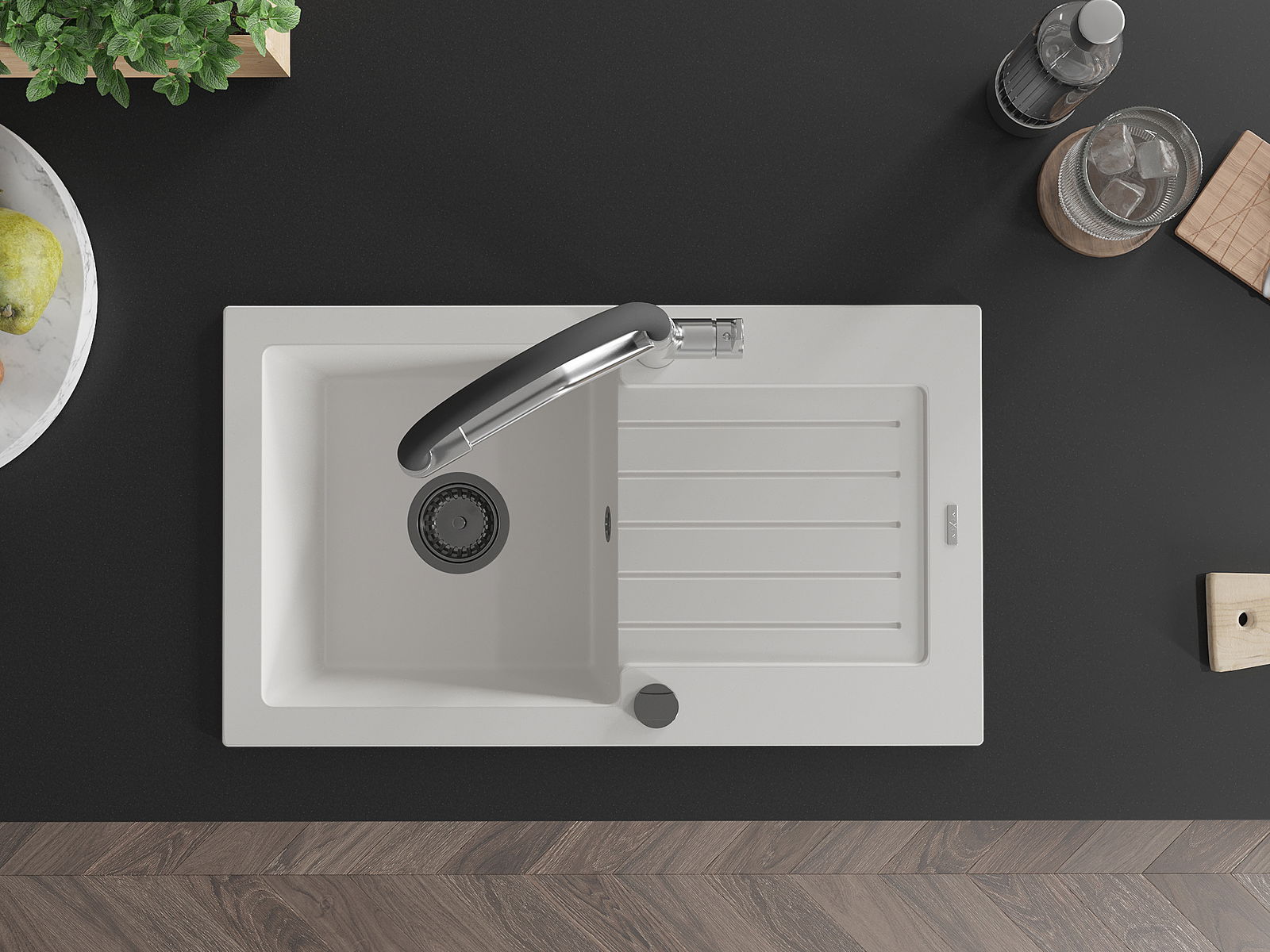 El fregadero está hecho de granito de alta calidad. Constituye un complemento elegante y, sobre todo, práctico para cualquier cocina, independientemente de su estilo. La alta calidad y durabilidad del granito aseguran un uso durante muchos años.