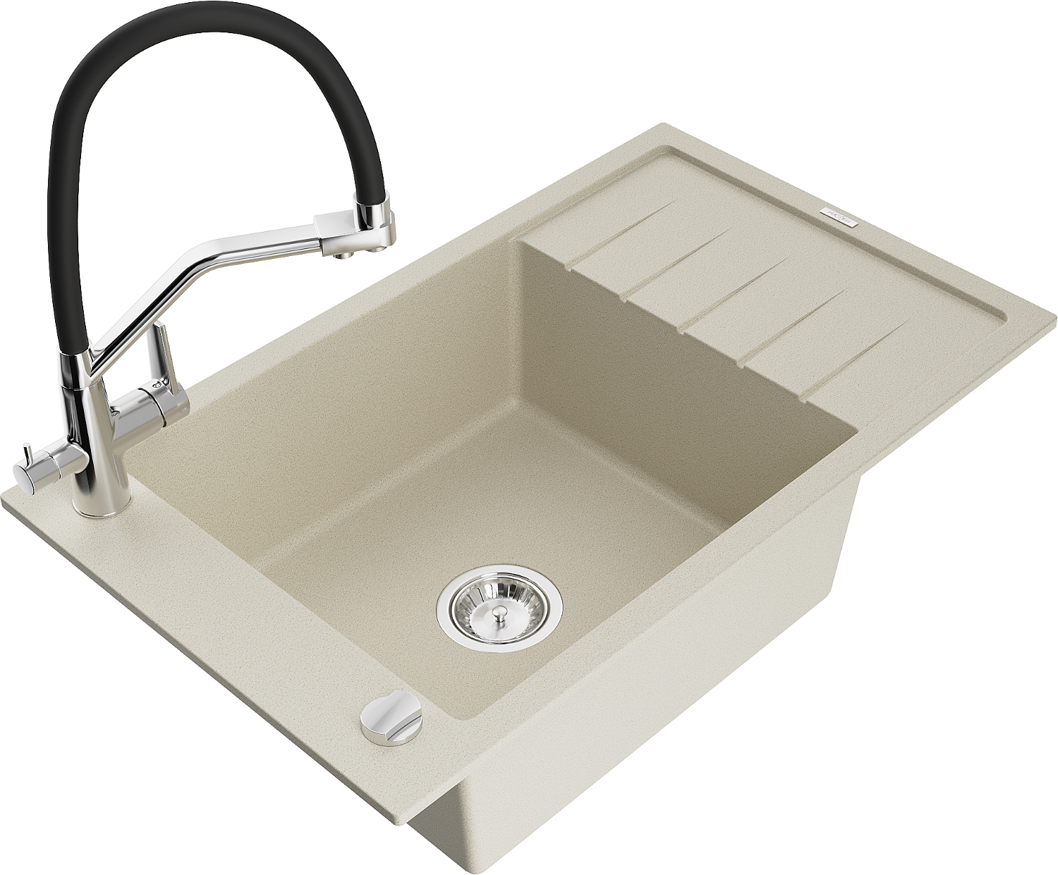 Mexen Elias fregadero de granito de 1 cubeta con escurridor y grifo de cocina Duo, beige - 6511-69-671701-07