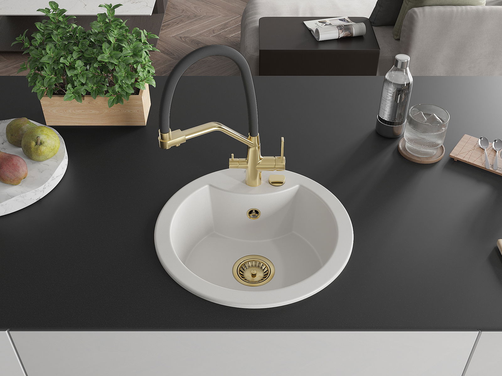 El fregadero está hecho de granito de alta calidad. Constituye un complemento elegante y, sobre todo, práctico para cualquier cocina, independientemente de su estilo. La alta calidad y durabilidad del granito aseguran un uso durante muchos años.