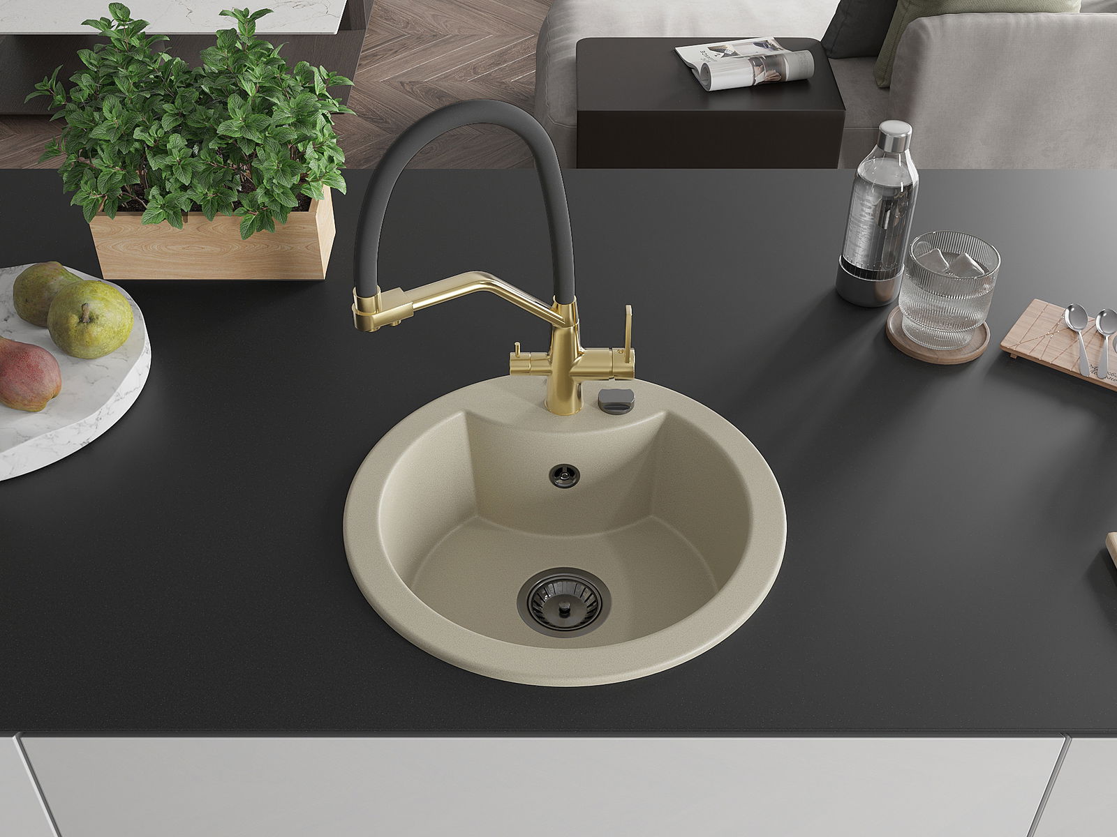 El fregadero está hecho de granito de alta calidad. Constituye un complemento elegante y, sobre todo, práctico para cualquier cocina, independientemente de su estilo. La alta calidad y durabilidad del granito aseguran un uso durante muchos años.