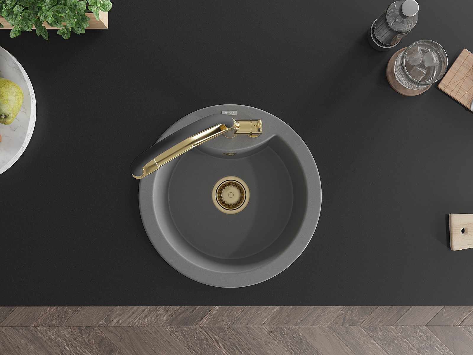 El fregadero está hecho de granito de alta calidad. Constituye un complemento elegante y, sobre todo, práctico para cualquier cocina, independientemente de su estilo. La alta calidad y durabilidad del granito aseguran un uso durante muchos años.