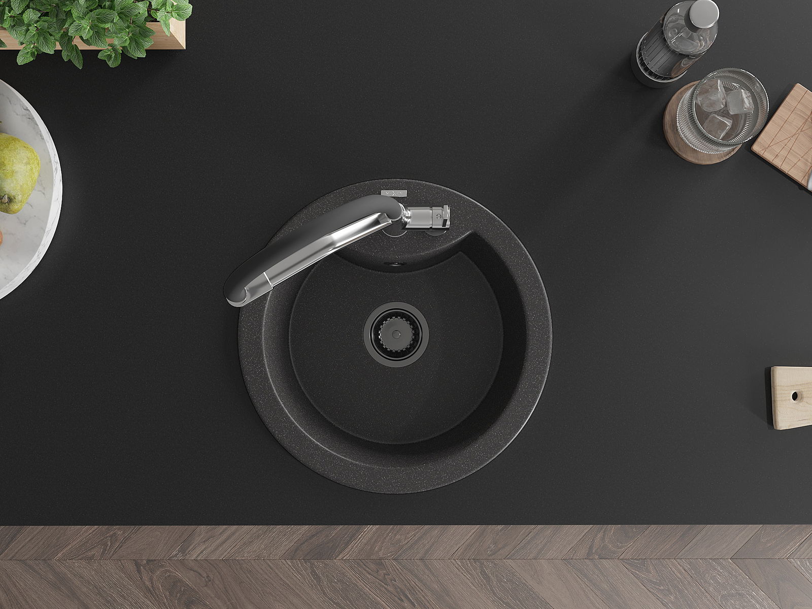 El fregadero está hecho de granito de alta calidad. Constituye un complemento elegante y, sobre todo, práctico para cualquier cocina, independientemente de su estilo. La alta calidad y durabilidad del granito aseguran un uso durante muchos años.