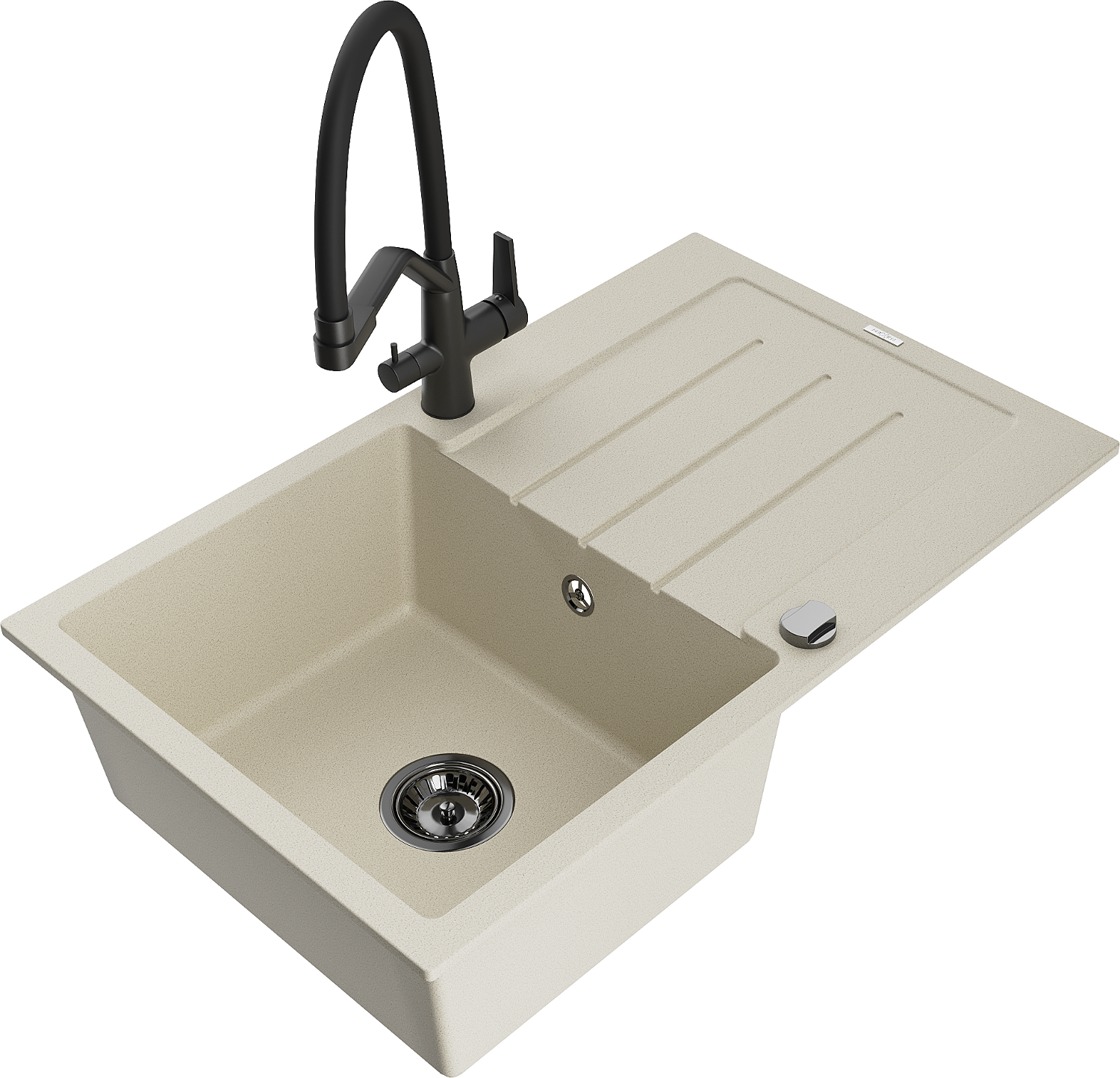 El fregadero está hecho de granito de alta calidad. Constituye un complemento elegante y, sobre todo, práctico para cualquier cocina, independientemente de su estilo. La alta calidad y durabilidad del granito aseguran un uso durante muchos años.