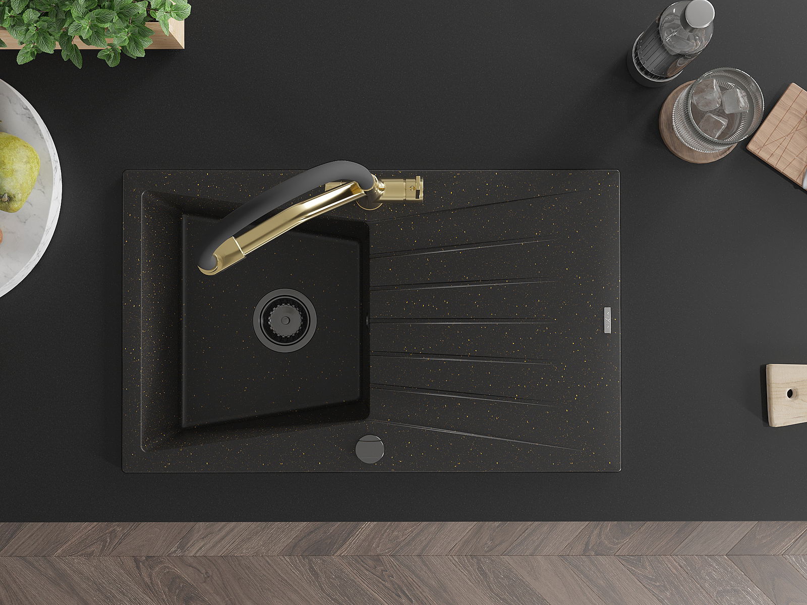 El fregadero está hecho de granito de alta calidad. Es un complemento elegante y, sobre todo, práctico para cualquier cocina, independientemente de su estilo. La alta calidad y durabilidad del granito aseguran un uso prolongado durante años.