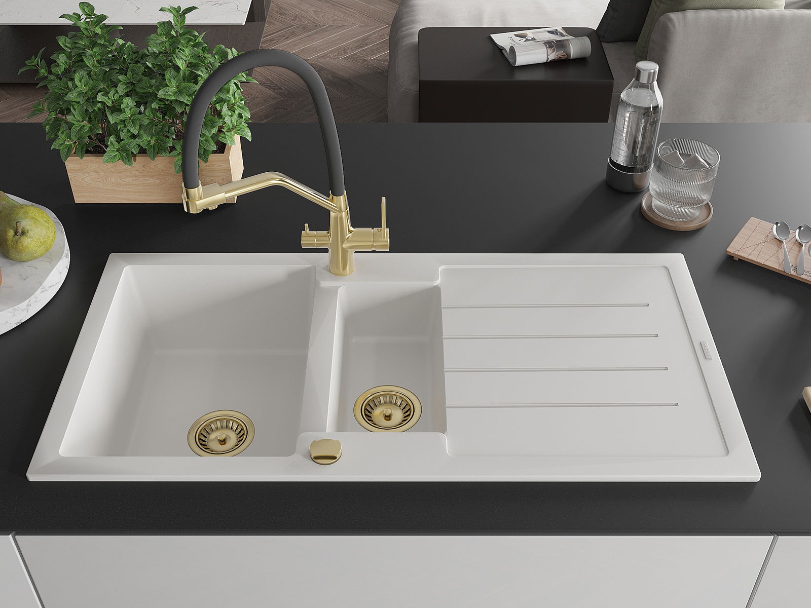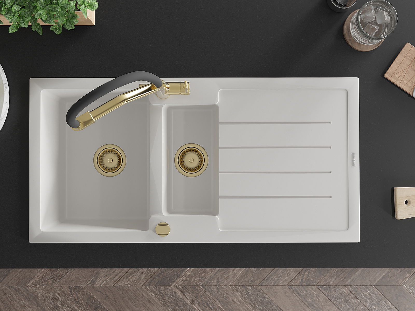 Mexen Andres fregadero de granito 1,5 cubetas con escurridor y grifo de cocina Duo, blanco - 6515-20-671701-57-G