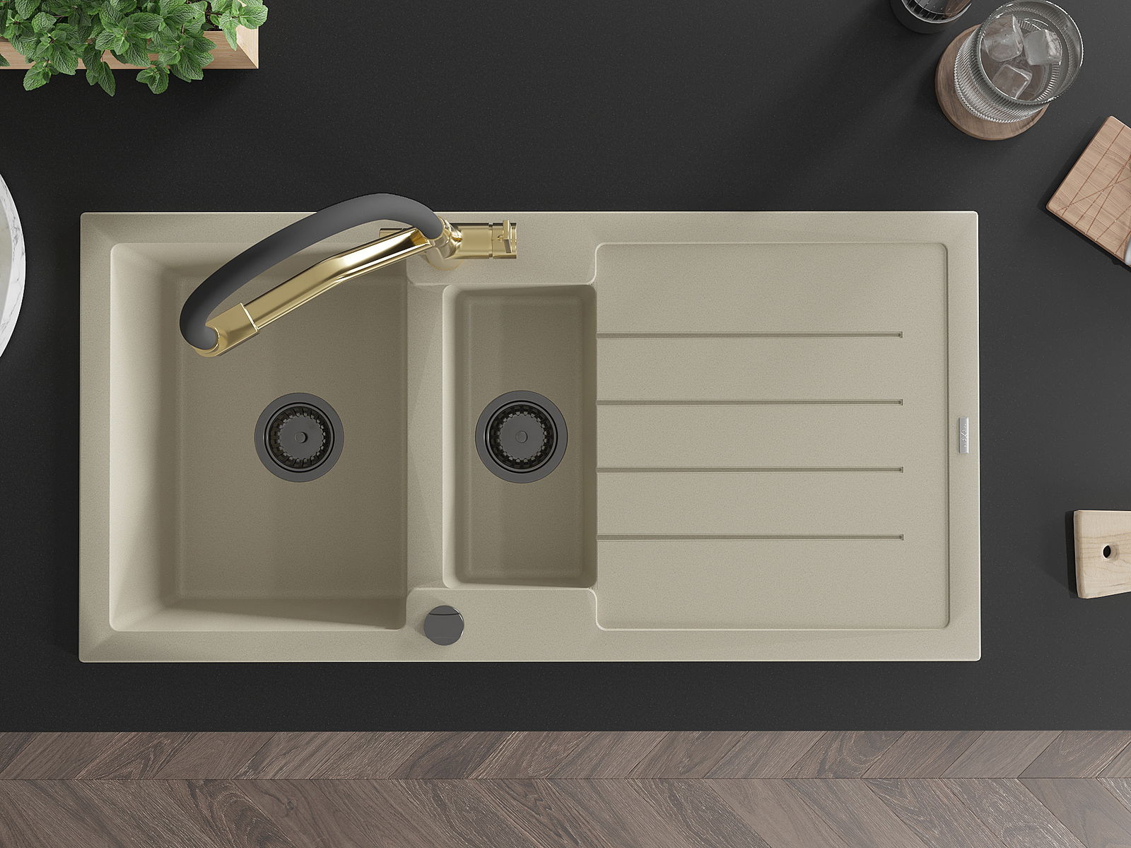 El fregadero está hecho de granito de alta calidad. Constituye un complemento elegante y, sobre todo, práctico para cualquier cocina, independientemente de su estilo. La alta calidad y durabilidad del granito aseguran un uso durante muchos años.