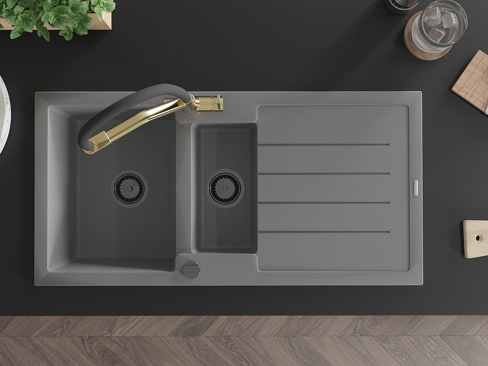 El fregadero está hecho de granito de alta calidad. Constituye un complemento elegante y, sobre todo, práctico para cualquier cocina, independientemente de su estilo. La alta calidad y durabilidad del granito aseguran un uso durante muchos años.