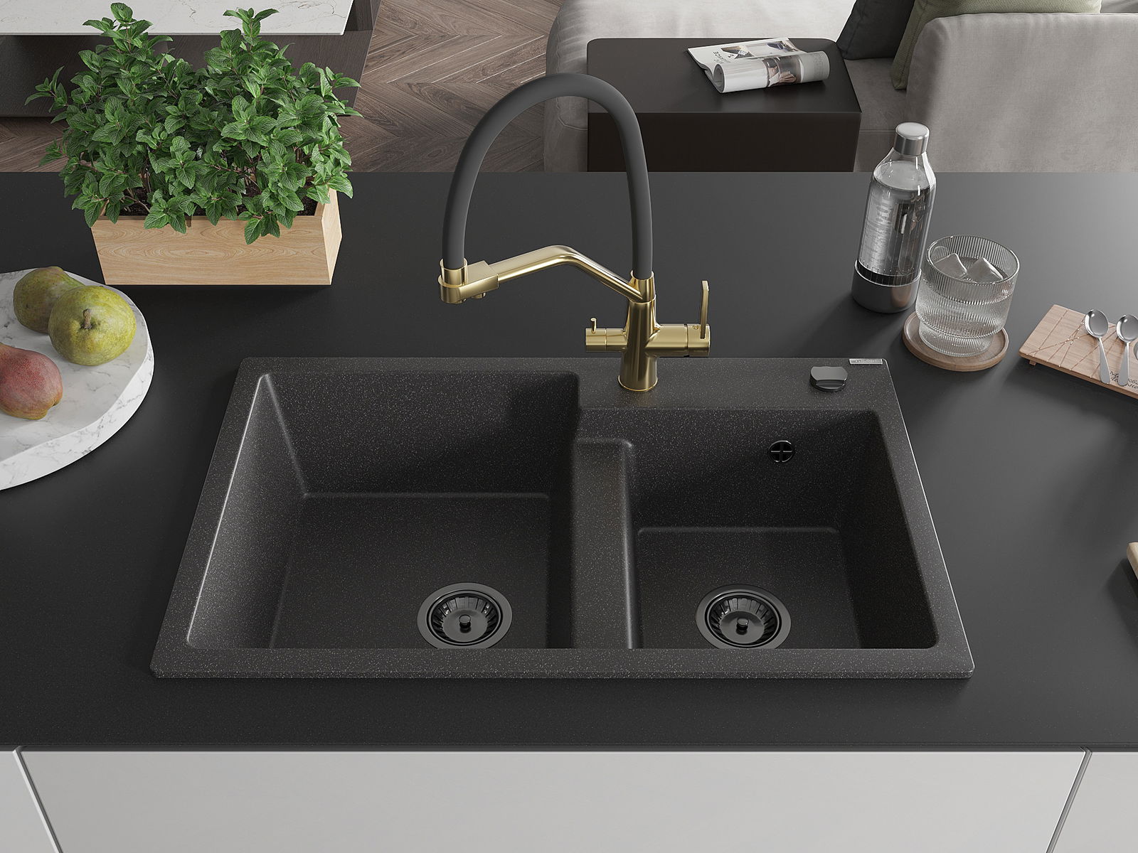 El fregadero está hecho de granito de alta calidad. Constituye un complemento elegante y, sobre todo, práctico para cualquier cocina, independientemente de su estilo. La alta calidad y durabilidad del granito aseguran un uso durante muchos años.