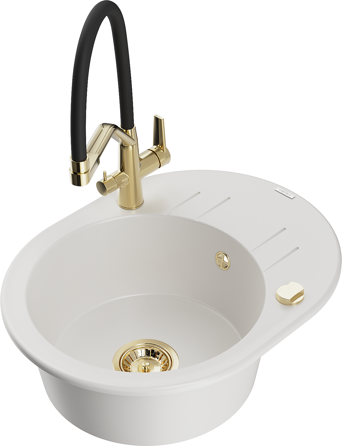 Mexen Kevin fregadero de granito de 1 seno con grifo de cocina Duo, blanco - 6517-20-671701-57-G