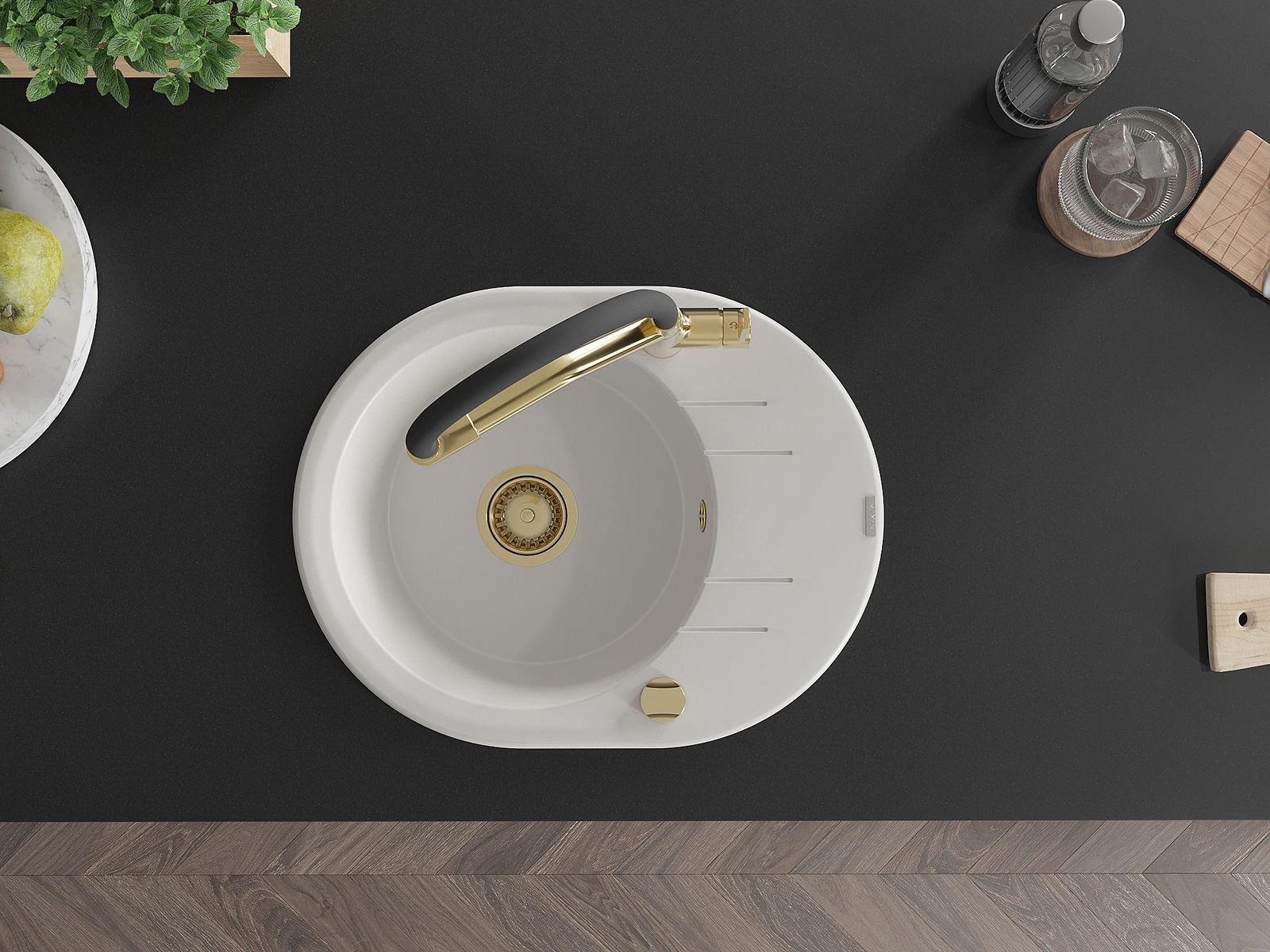 El fregadero está hecho de granito de alta calidad. Constituye un complemento elegante y, sobre todo, práctico para cualquier cocina, independientemente de su estilo. La alta calidad y durabilidad del granito aseguran un uso durante muchos años.
